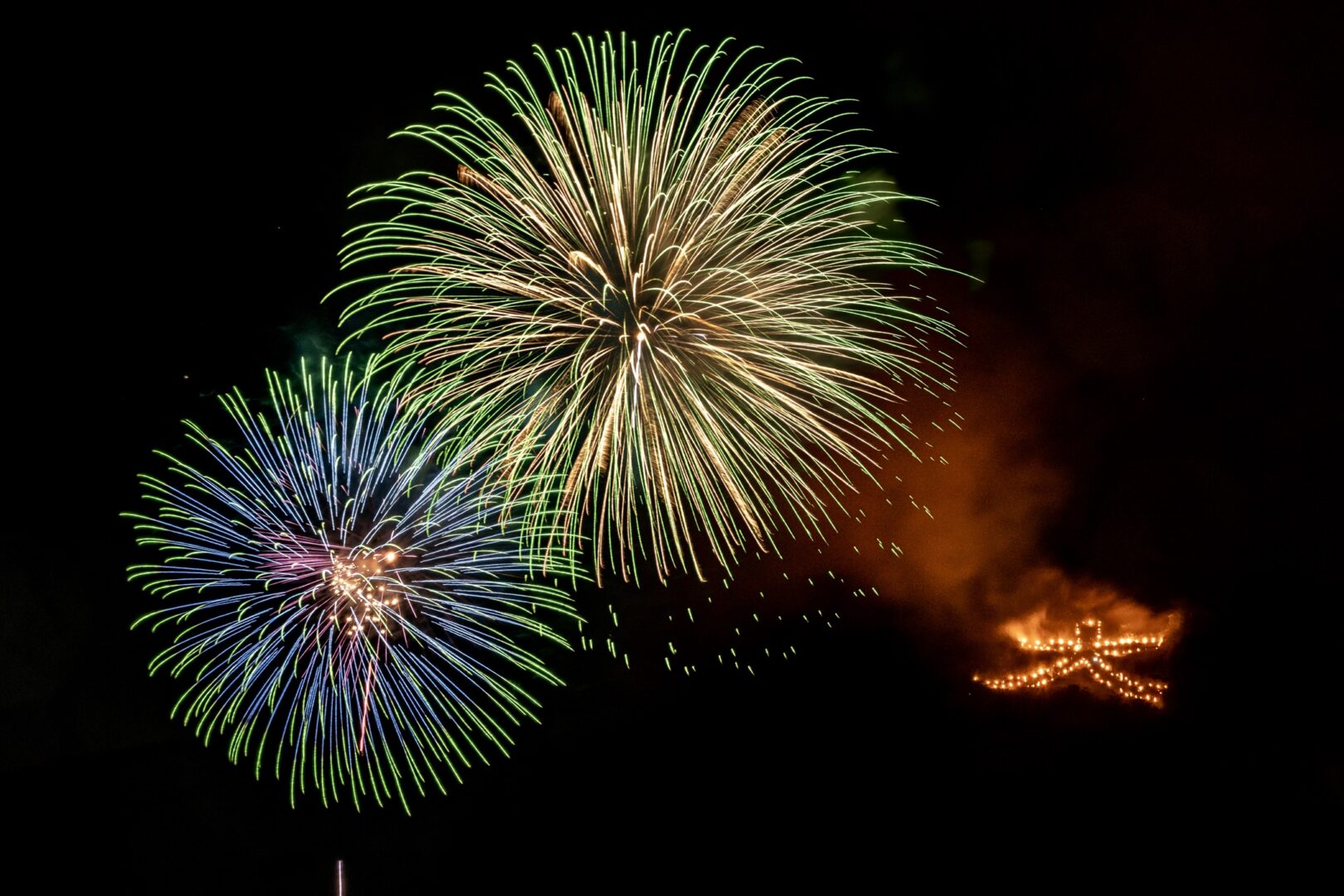 On the evening of August 16, a fire in the shape of the kanji character 大 (dai) is set ablaze on the slopes of Mount Myojogatake as night falls. The horizontal stroke measures 108 meters in length, the stroke sloping down to the left from the top is 162 meters, and the stroke sloping down to the right from the center is 81 meters.