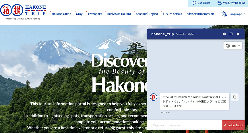 In addition to helping with accommodation reservations, the Chatbot offers useful travel information such as sightseeing tips. Available 24 hours a day, it ensures you can enjoy your stay in Hakone with complete peace of mind.