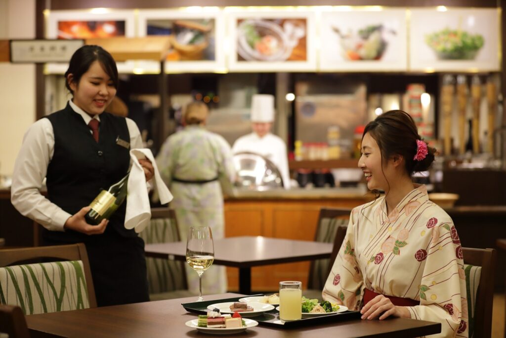 A standard stay at a Japanese hot spring inn includes one night with two meals, a unique feature of Japanese accommodations. Meals may be served in a designated dining area, a hotel restaurant, or a separate in-room dining space, offering anything from multi-course kaiseki meals using local ingredients to buffet-style dining. Some inns allow you to choose your meal time upon check-in, so be sure to confirm.