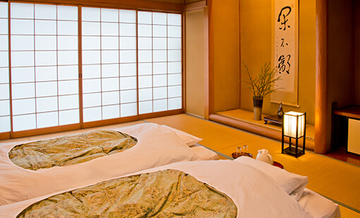 If you want to experience staying in a Japanese-style room but prefer a bed, choose a room labeled "Japanese-Western style" for a tatami room with a comfortable bed.