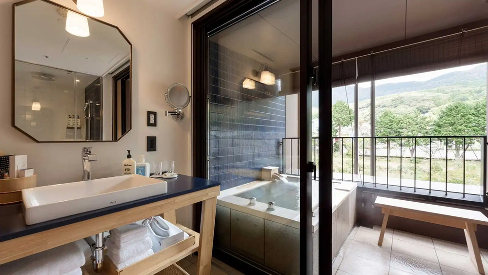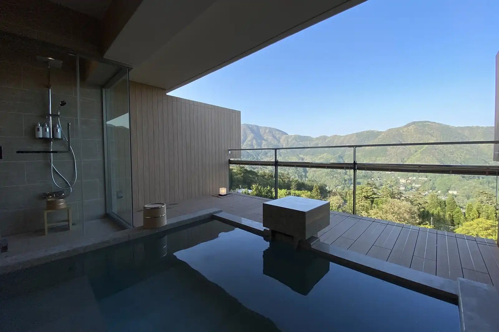 "Hotel Indigo Hakone Gora" has the concept of a modern hideaway. All guest rooms come with a private onsen, and all rooms except for the Hillside rooms feature an open-air bath.