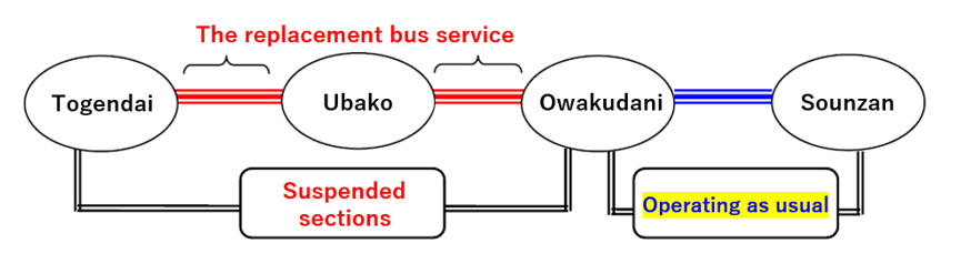 Hakone Ropeway will be suspended for some sections due to inspection work, and there will be replacement buses. Please check below for the details.