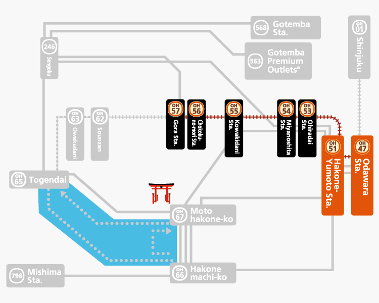 ※ An extra fee is required for the Limited Express “Romancecar” between Odawara Station ~ Hakone-Yumoto Station.