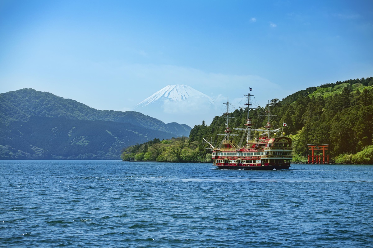 Located in the caldera of the Hakone volcano, Lake Ashi offers stunning views of Mt. Fuji and beautiful seasonal scenery. On the lake, you can enjoy the Hakone Sightseeing Cruise, a sightseeing boat shaped like a pirate ship. Historic sites such as Hakone Shrine and the Hakone Checkpoint line the shores. On clear days, the iconic “Upside-down Fuji” reflects on the water, making it a photographer’s dream. Nature, history, and leisure come together in this must-see Hakone destination.