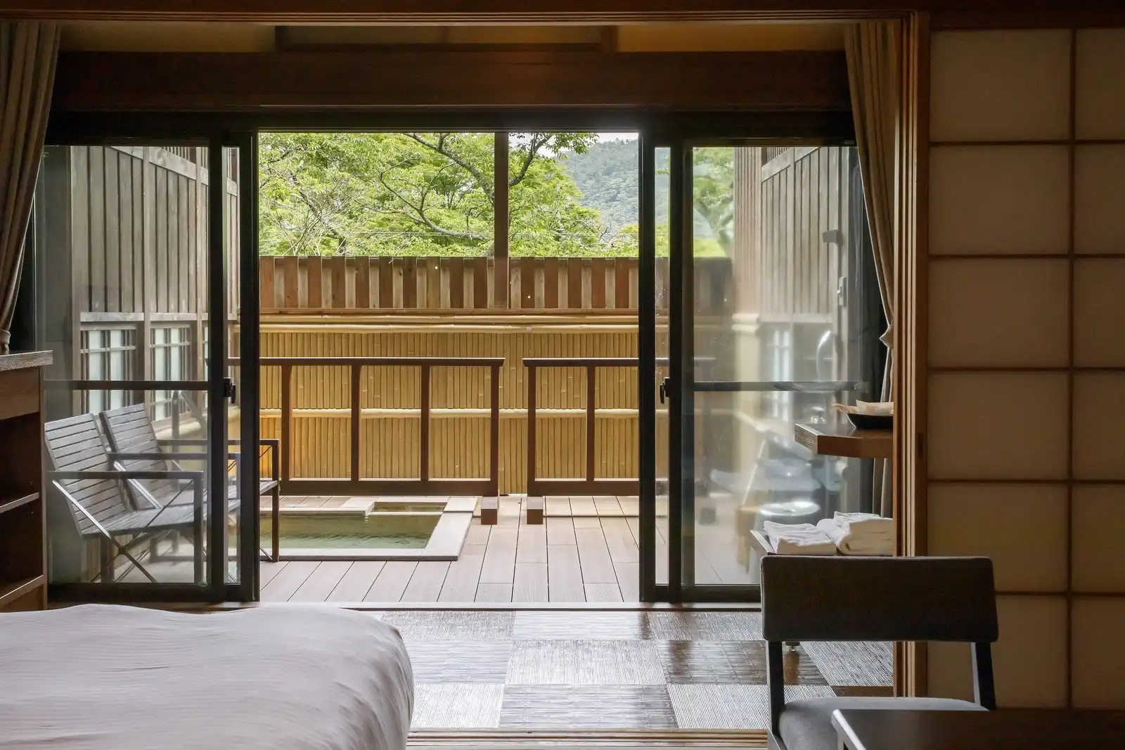 Hakone Kowakien Mikawaya Ryokan, established in 1883, is a historic inn in the Kowakudani area, designated as a Registered Tangible Cultural Property of Japan. Nestled on the mountainside of Hakone, it offers guests a chance to experience traditional charm and the changing seasons of Japan. The open-air baths and private onsen, surrounded by nature, all feature free-flowing hot spring water. The clear, gentle waters are said to help relieve stress, neuralgia, and fatigue while leaving the skin smooth. With refined cuisine and comfortable rooms, Mikawaya Ryokan provides both cultural heritage and a tranquil hot spring retreat.