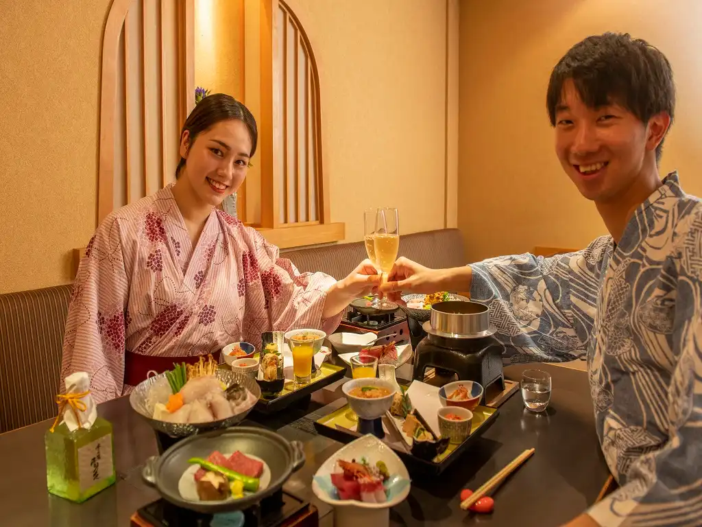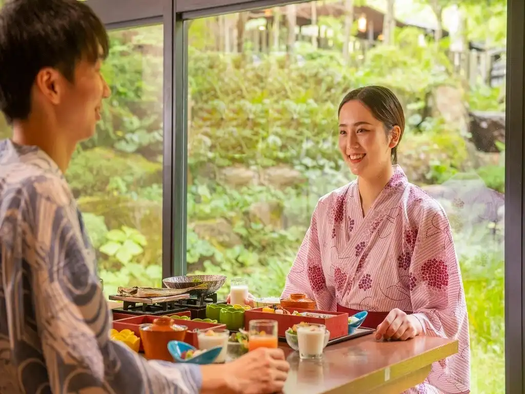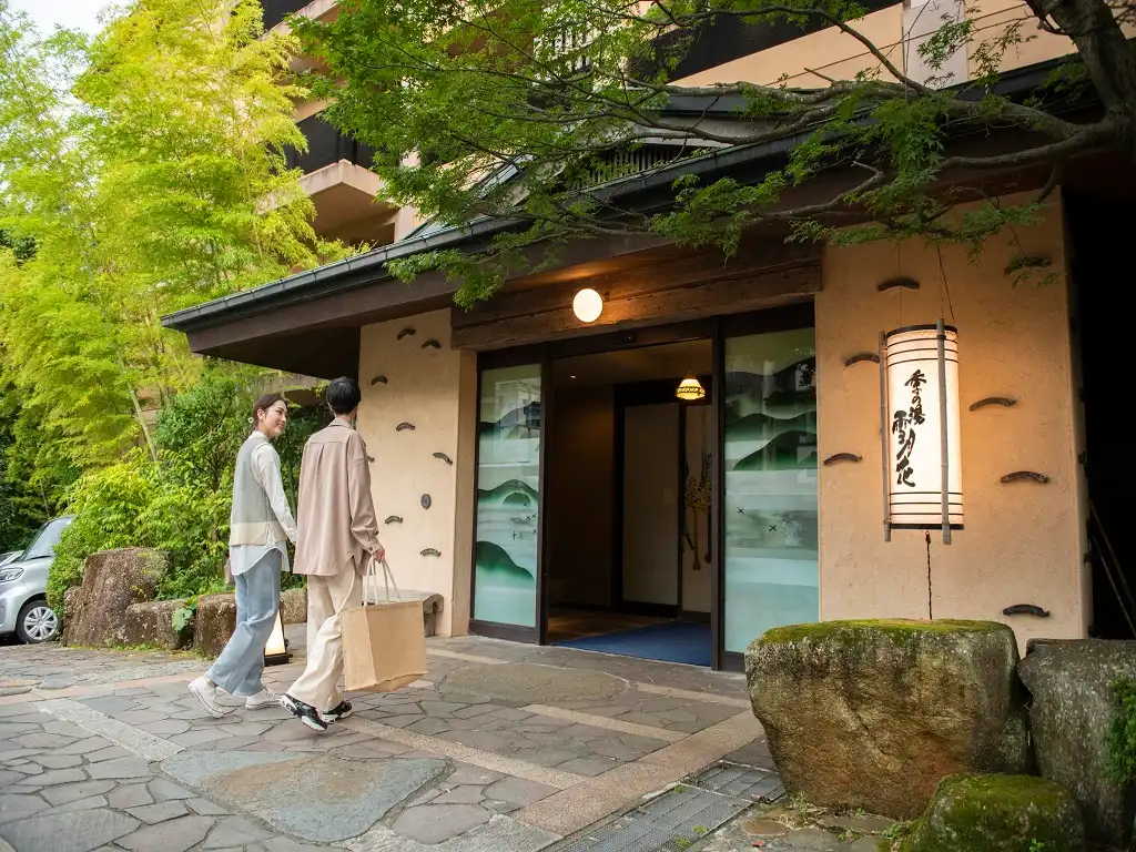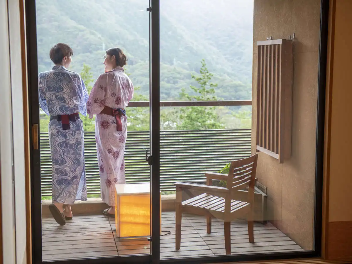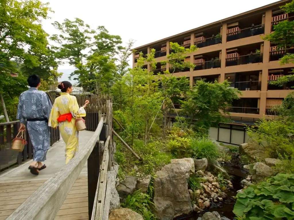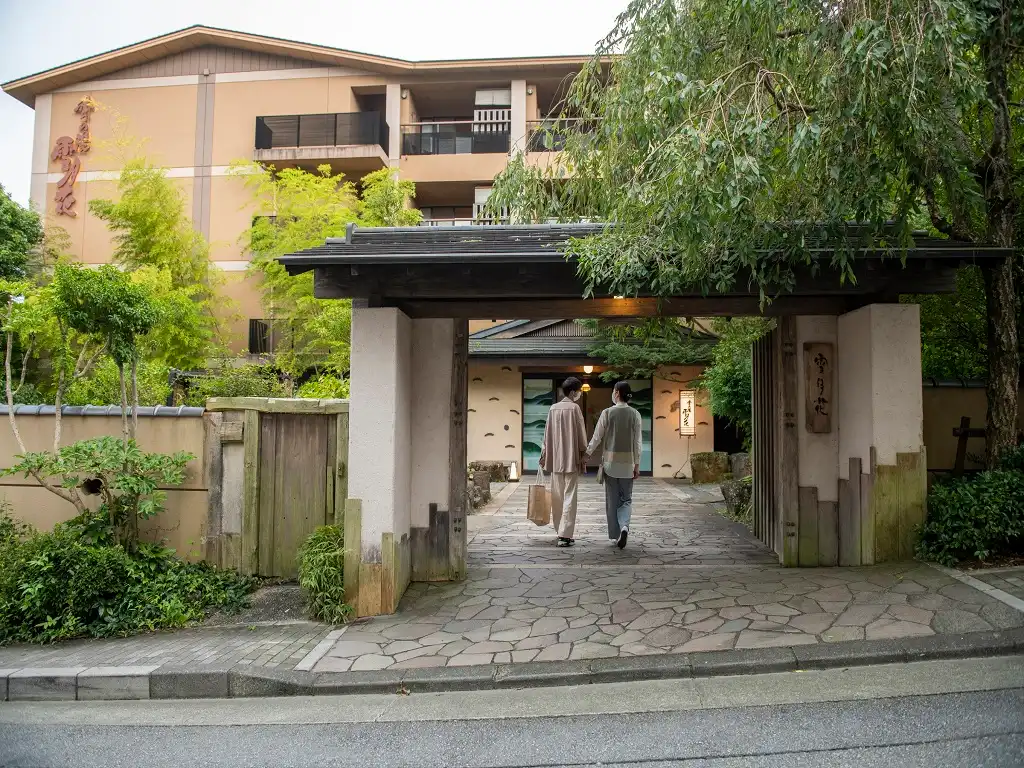 Toki no Yu Setsugetsuka is a modern ryokan in the Gora area, just a 1-minute walk from Gora Station—an ideal base for exploring Hakone. All guestrooms feature private hinoki open-air baths, offering a serene retreat. Female guests can enjoy selecting from a variety of colorful yukata, adding to the charm of the stay. Free private open-air baths are also available, popular among couples and families. With soothing hot springs, seasonal cuisine, and warm hospitality, Setsugetsuka is perfect for both sightseeing and a relaxing getaway.