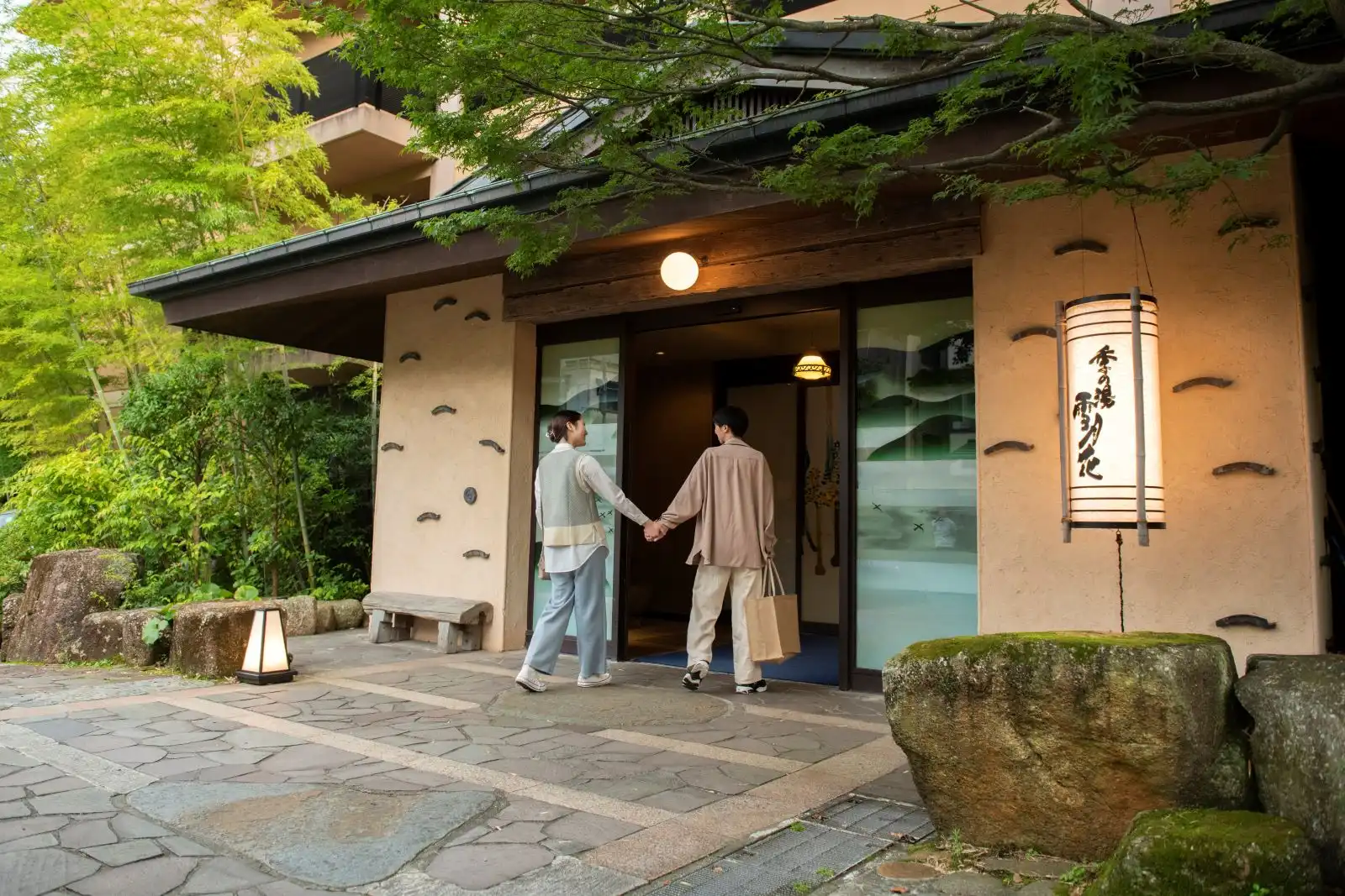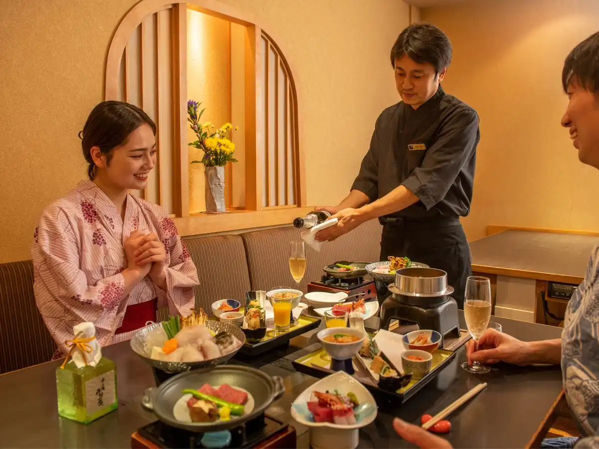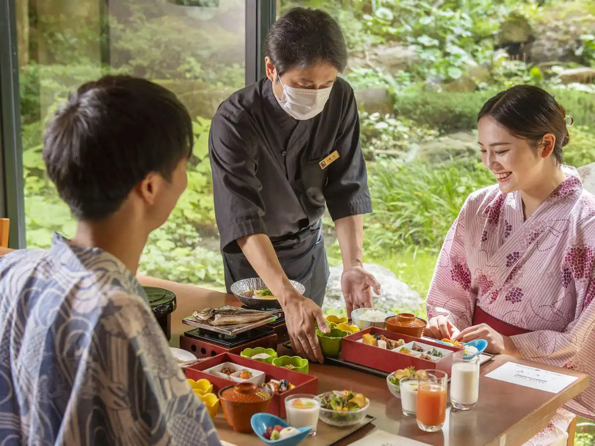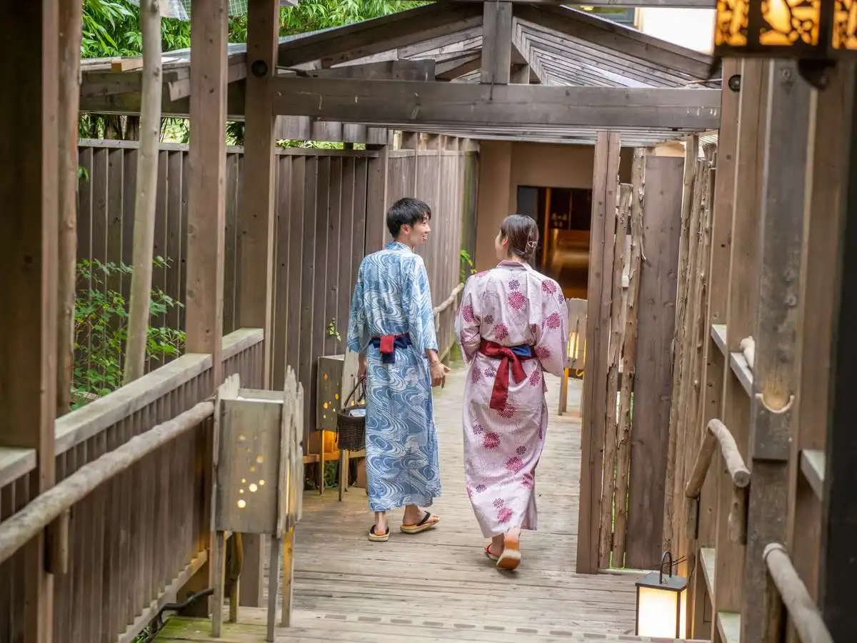 Toki no Yu Setsugetsuka is a modern ryokan in the Gora area, just a 1-minute walk from Gora Station—an ideal base for exploring Hakone. All guestrooms feature private hinoki open-air baths, offering a serene retreat. Female guests can enjoy selecting from a variety of colorful yukata, adding to the charm of the stay. Free private open-air baths are also available, popular among couples and families. With soothing hot springs, seasonal cuisine, and warm hospitality, Setsugetsuka is perfect for both sightseeing and a relaxing getaway.