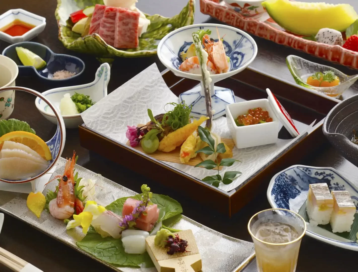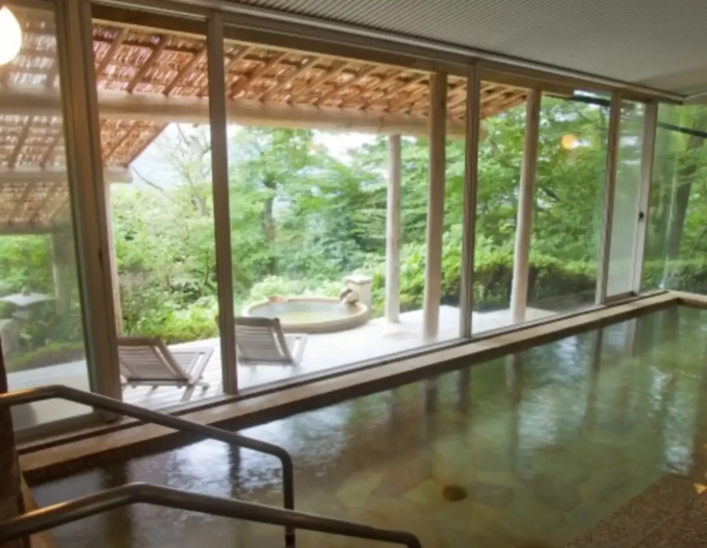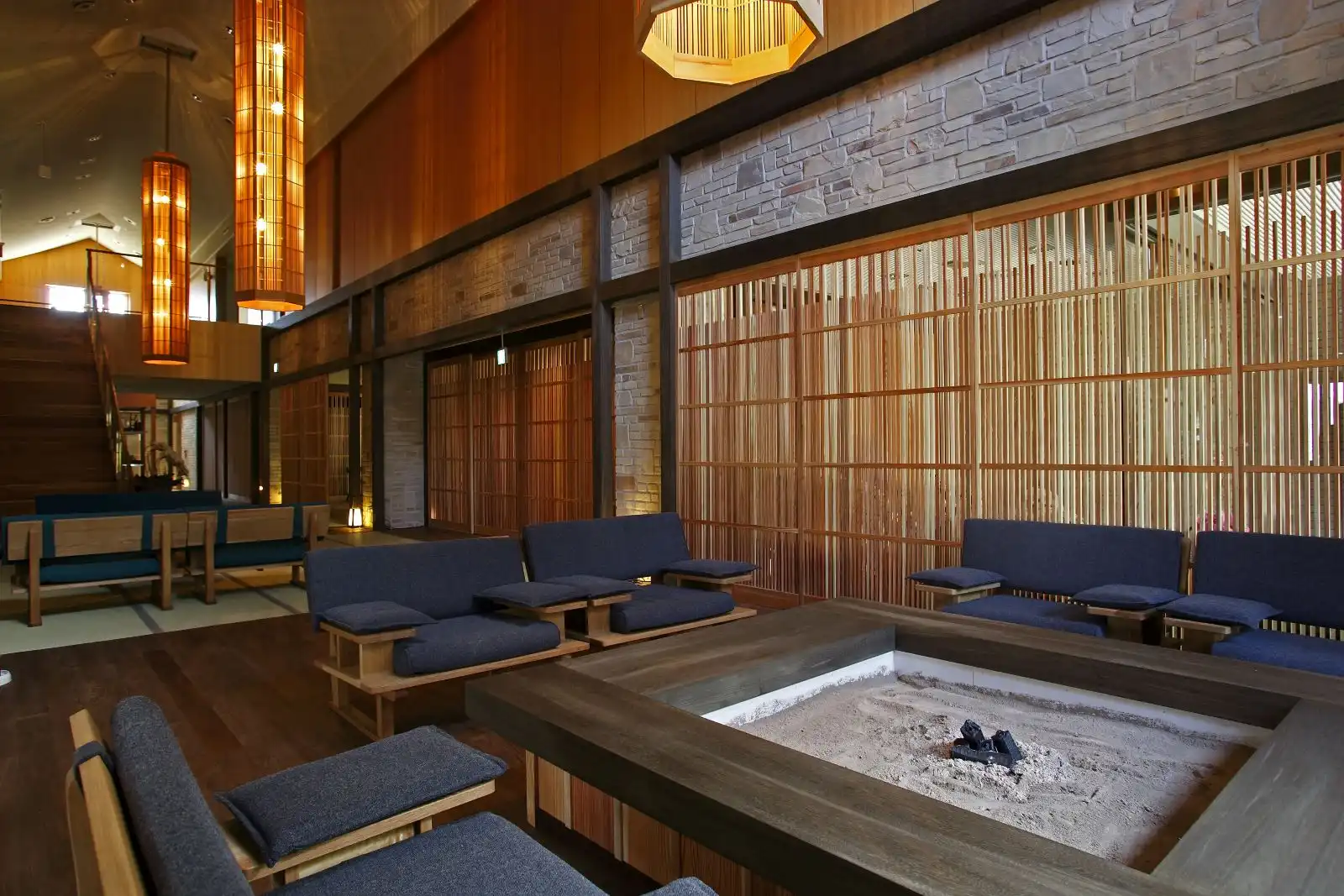 Gora Hanaougi is a luxurious ryokan in the Gora area, where every guestroom is equipped with a private open-air bath fed by its own hot spring source. The interior features tatami flooring throughout, with abundant use of keyaki (zelkova) wood, filling the space with a natural fragrance. Guests can relax in privacy while admiring panoramic views of the Hakone mountains. Dinner showcases elegant Kyoto-style kaiseki cuisine prepared with carefully selected seasonal ingredients. With soothing onsen and refined hospitality, Gora Hanaougi offers an exceptional retreat.