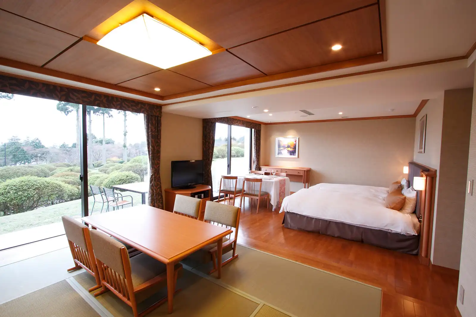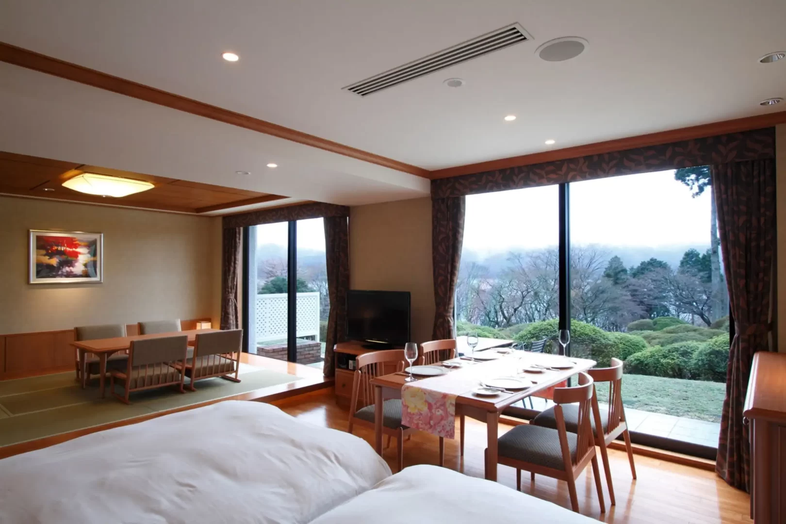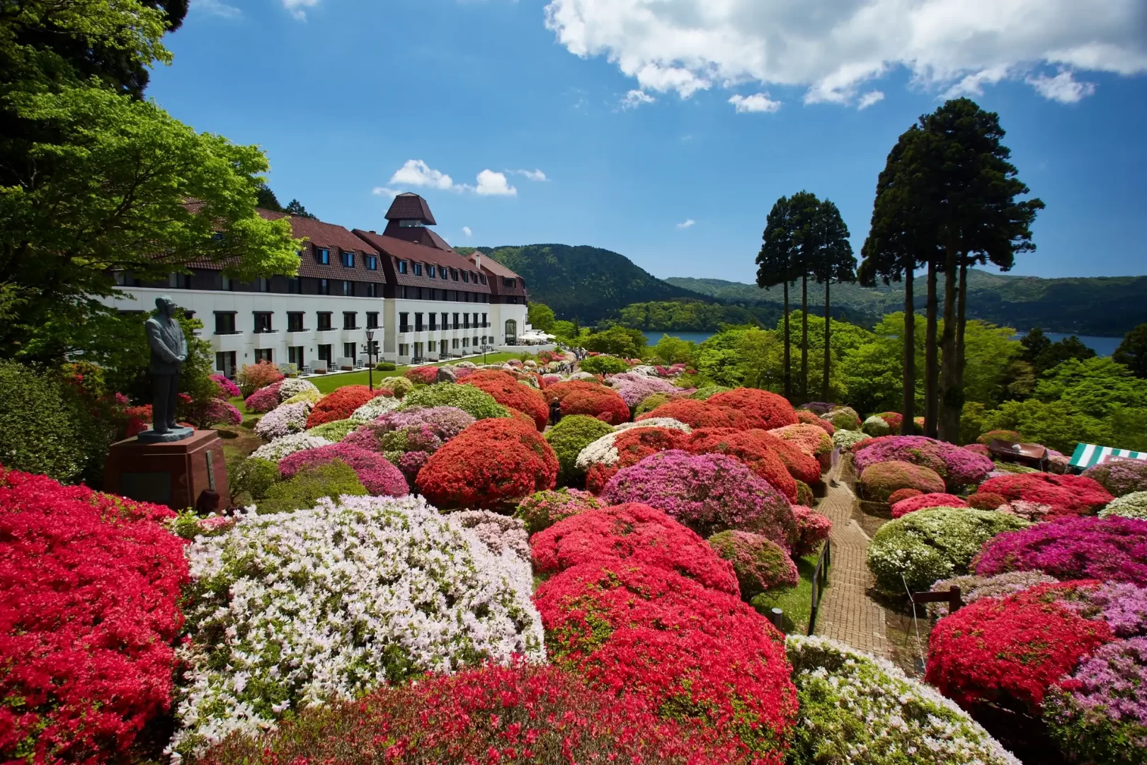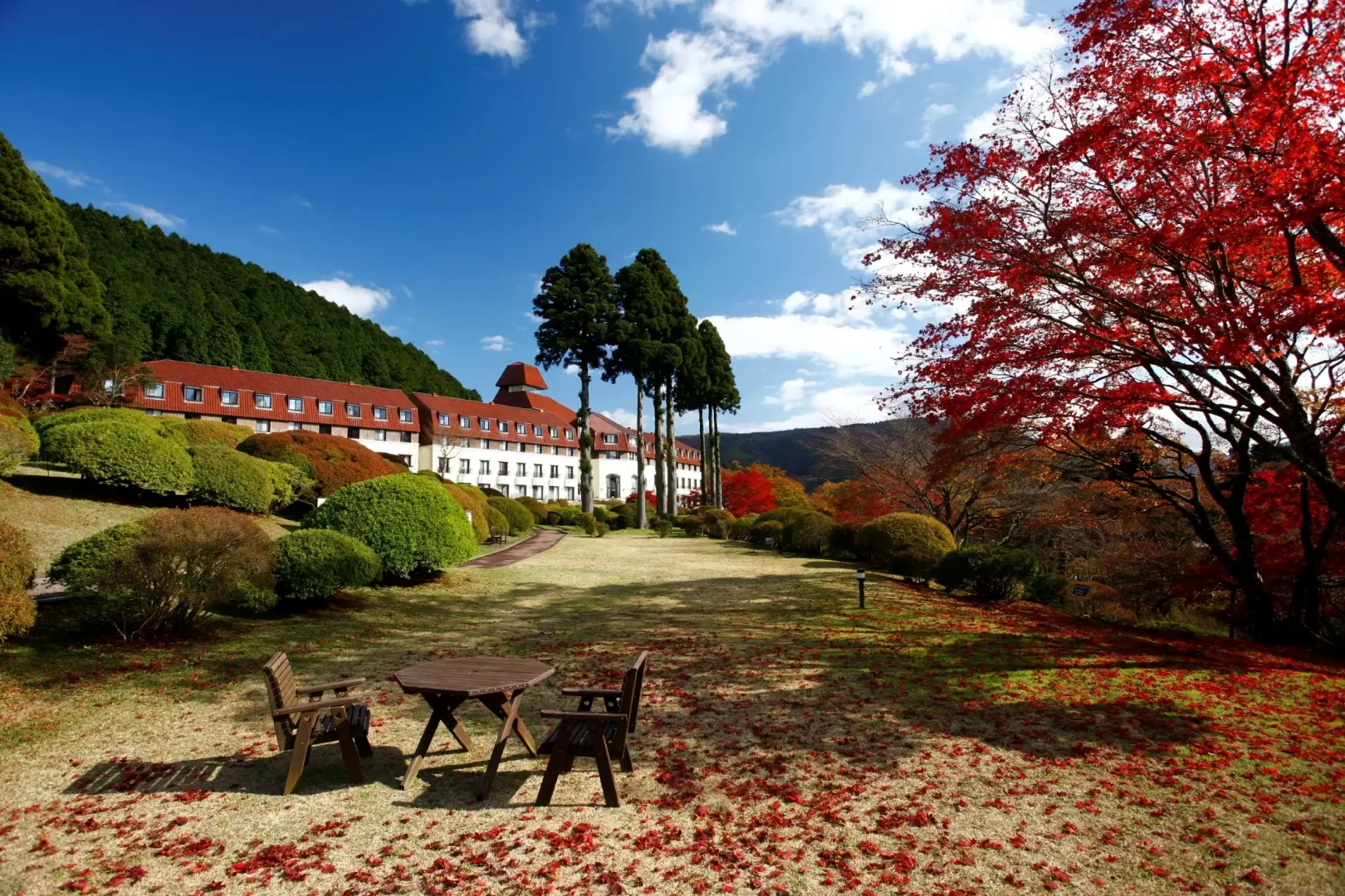 Hotel de Yama is a classic lakeside resort in the Ashinoko area, built on the former estate of Baron Iwasaki. Overlooking Lake Ashi, guests can enjoy magnificent views of Mt. Fuji on clear days. The hotel offers refined French cuisine at “Vert Bois” and traditional Japanese dishes at “Tsutsuji no Chaya,” both prepared with seasonal ingredients. Guests can also relax in the abundant hot springs of “Tsutsuji no Yu” or unwind at “Spa Montagne.” With exquisite dining, soothing onsen, and stunning scenery, Hotel de Yama promises an unforgettable Hakone retreat.