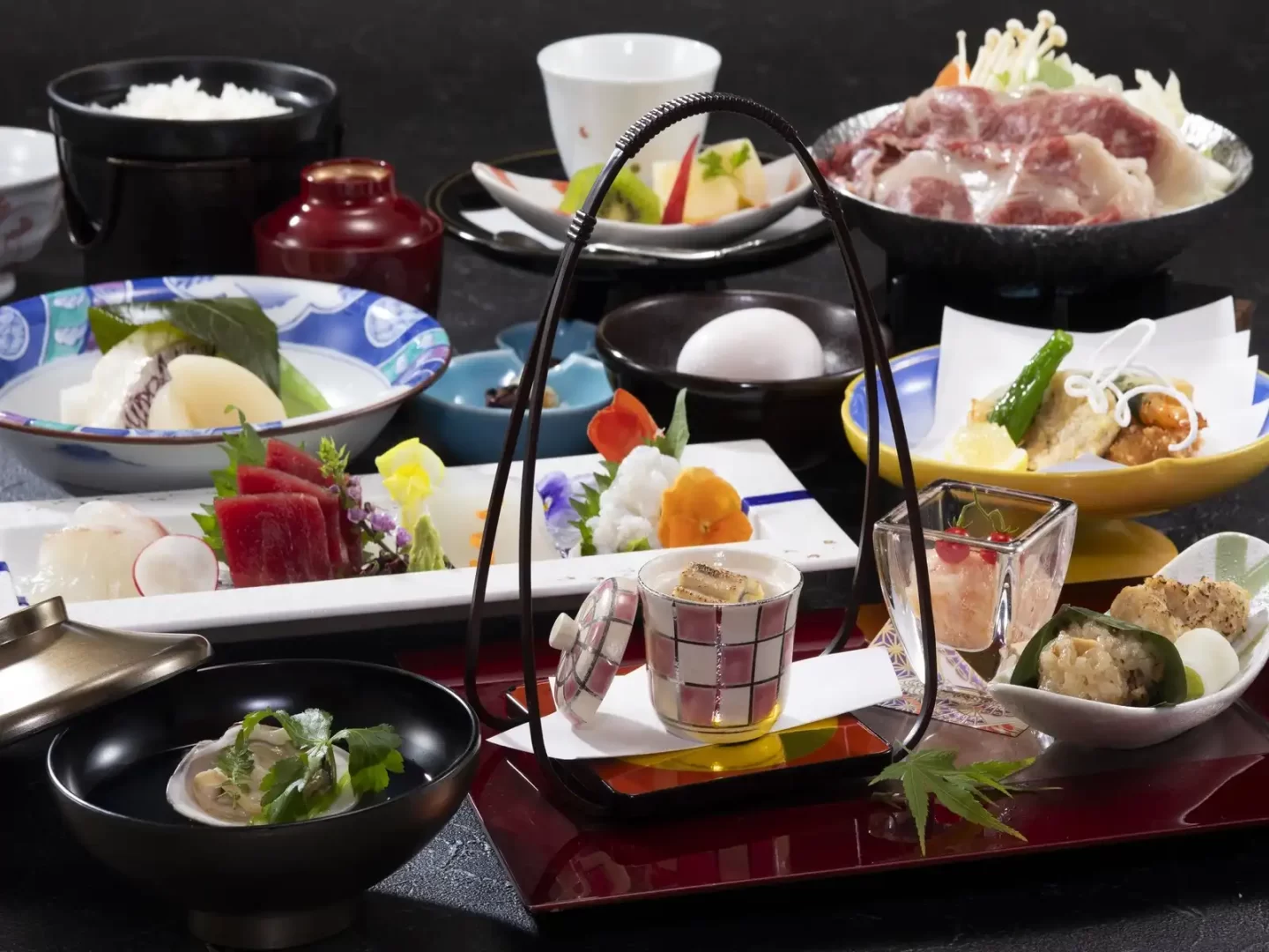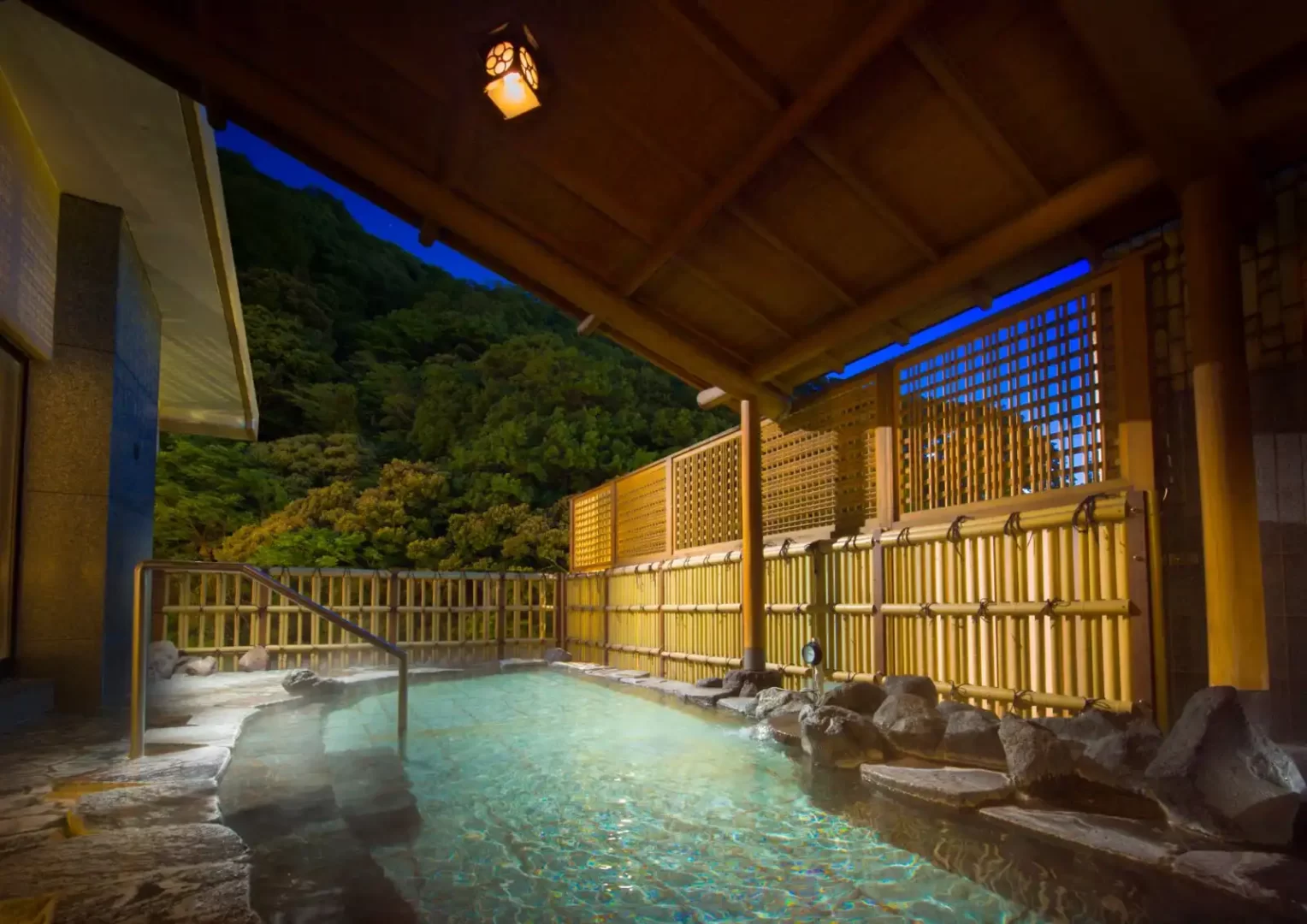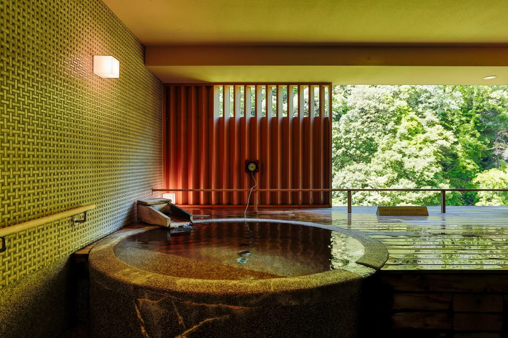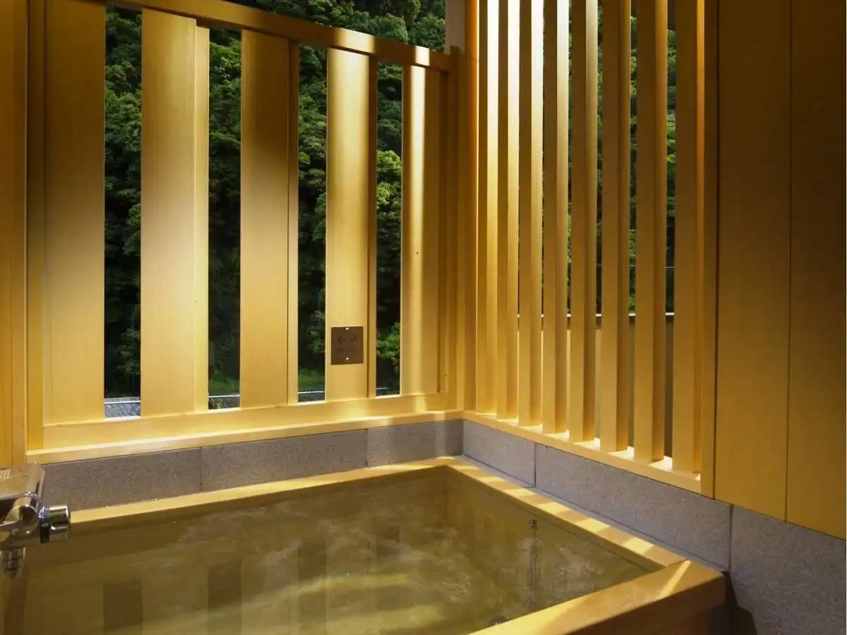 Hakone Pax Yoshino is a relaxing hot spring ryokan along the Sukumogawa River, about a 13-minute walk from Hakone-Yumoto Station. The hotel features a panoramic large bath 20 meters above ground and serves seasonal Japanese kaiseki cuisine. With three natural hot spring sources, the soothing “beauty water” is gentle on the skin and perfect for relieving fatigue. Hot spring water also flows into the guestroom baths. Guests can choose between the East Wing, with a calm Japanese style, or the West Wing, with a playful modern touch. With onsen, fine dining, and comfortable rooms, Hakone Pax Yoshino is ideal for sightseeing or a luxury retreat.