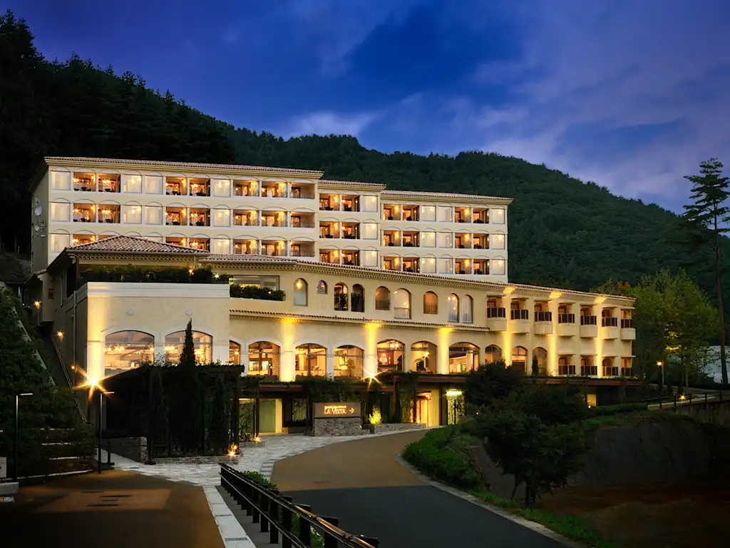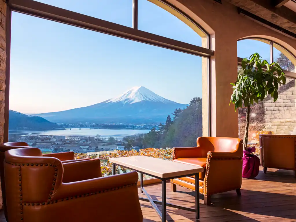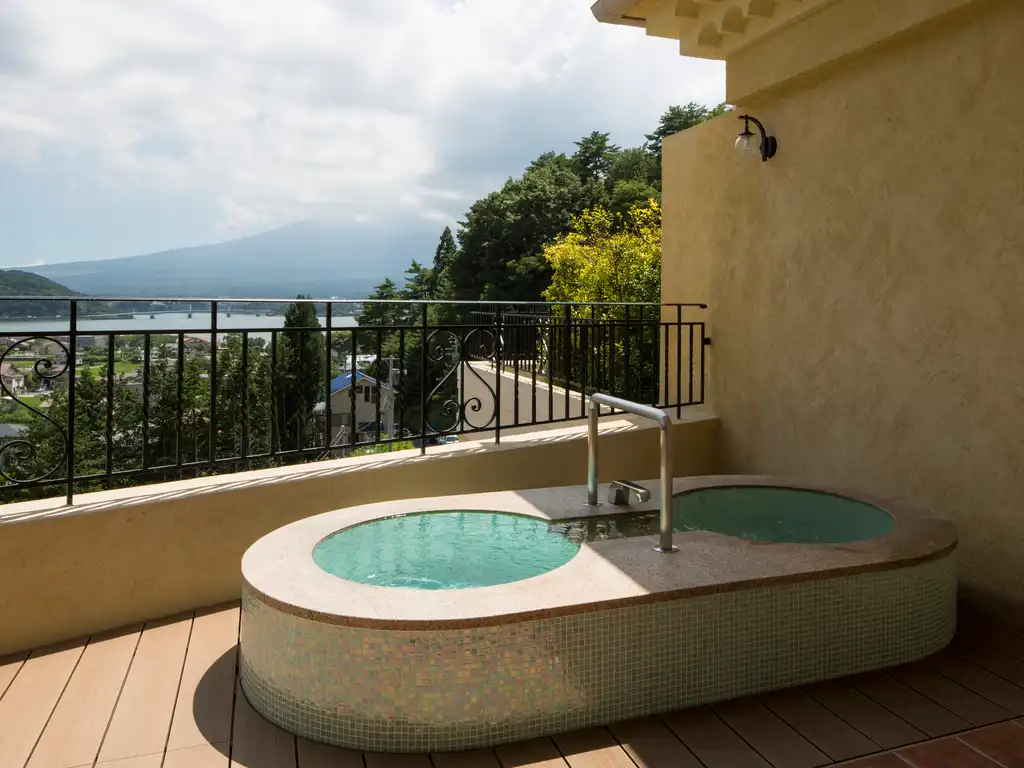 La Vista Fuji-Kawaguchiko is a stylish resort hotel in the Fuji–Kawaguchiko area, inspired by the charm of Provence in southern France. Guests can enjoy sweeping views of Mt. Fuji and Lake Kawaguchi from the property. Each guestroom features either an open-air onsen bath or a scenic bath, allowing for private relaxation with stunning vistas. Dinner is a French course meal prepared with fresh local ingredients. Surrounded by the beauty of all four seasons, the hotel offers an elegant and soothing retreat.