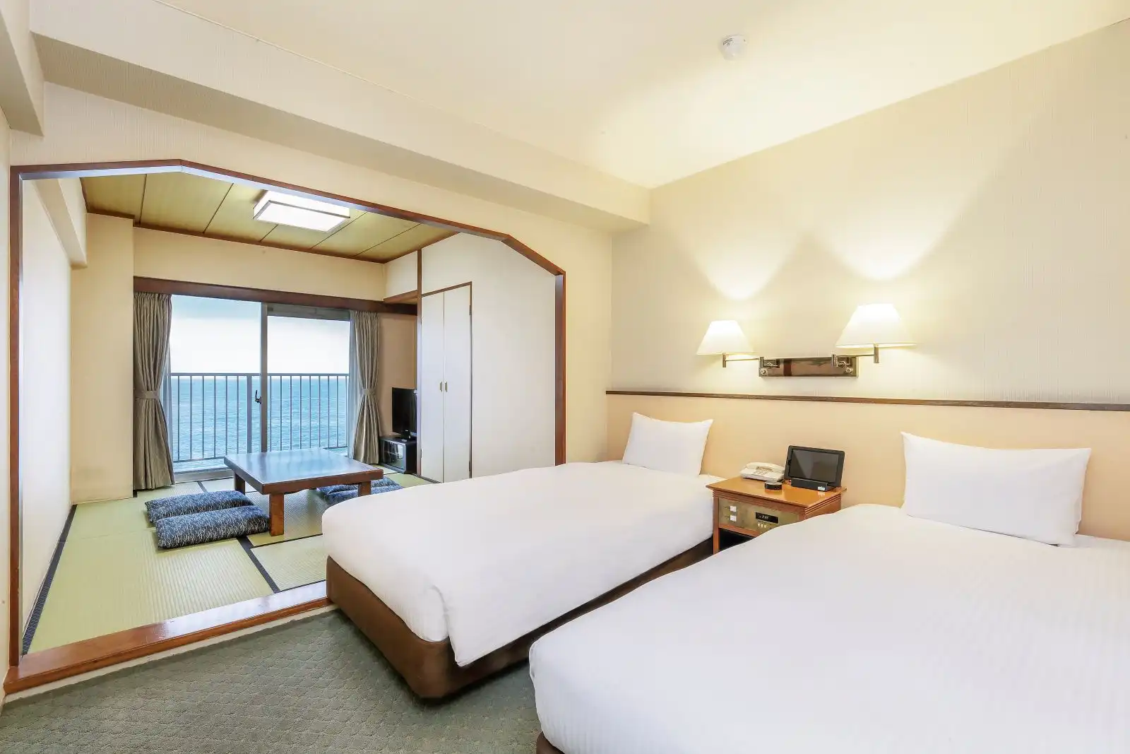 Hotel Resorpia Atami is a seaside resort in the Atami area, offering breathtaking views of Sagami Bay and convenient access for both leisure and business. Guests can unwind in spacious public baths and open-air hot springs while gazing out at the ocean. A variety of guest rooms, including Japanese, Western, and Japanese-Western styles, cater to different travel needs. Dining options feature seasonal Japanese kaiseki and Western cuisine, highly praised by guests. With facilities suitable for families, couples, and groups, the hotel ensures a comfortable and memorable stay.