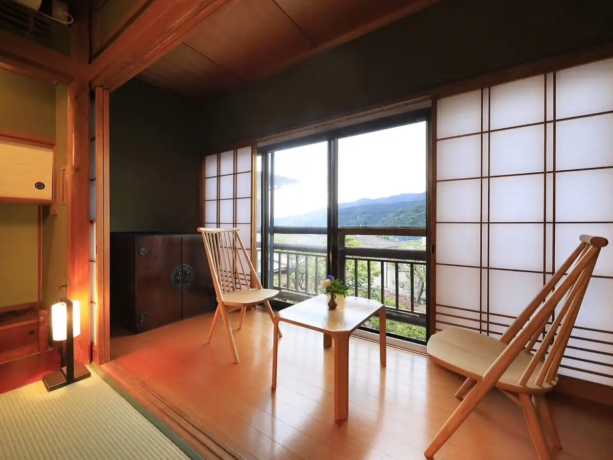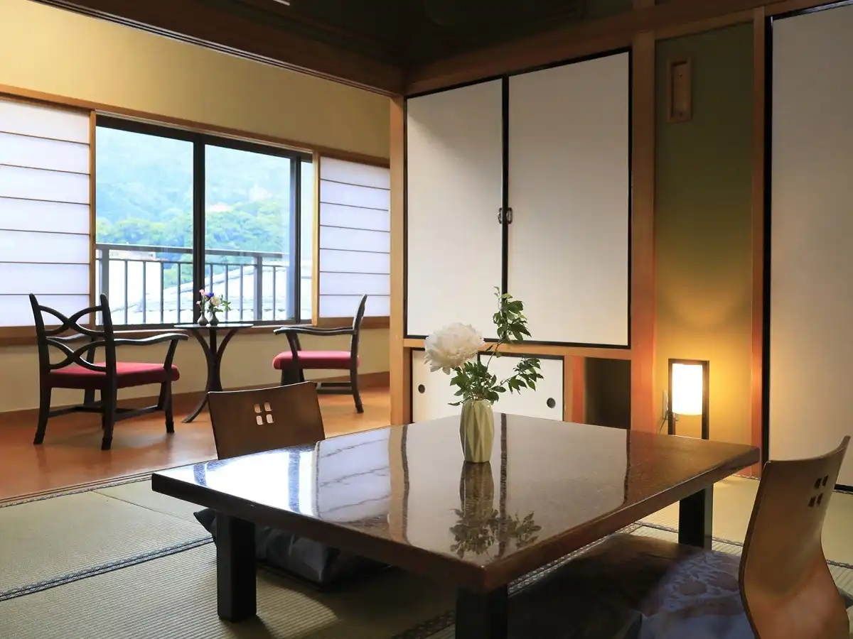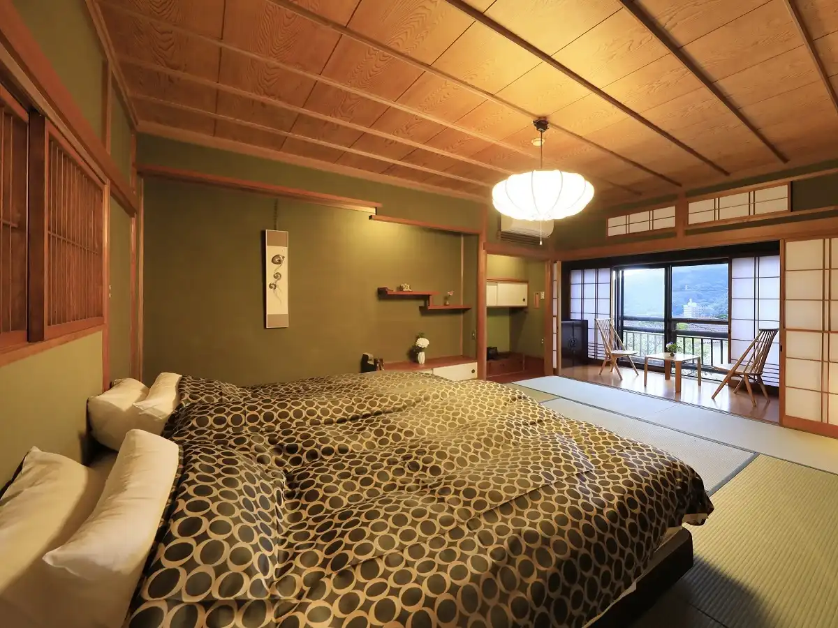 Yugawara Fuga is an elegant adult-oriented ryokan in the Yugawara area, designed as a serene retreat surrounded by nature. Guests can relax in open-air baths with natural hot spring water while admiring the seasonal scenery. Rooms blend traditional Japanese calm with modern Western comfort, creating a refined atmosphere. Dinner features creative kaiseki cuisine crafted with seasonal ingredients, beautifully presented for a memorable dining experience. Ideal as a sightseeing base or for therapeutic stays, the inn offers a tranquil escape from everyday life.