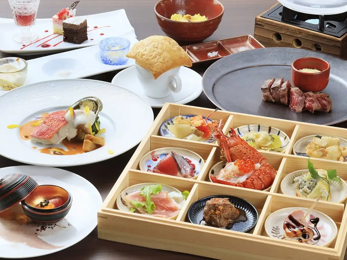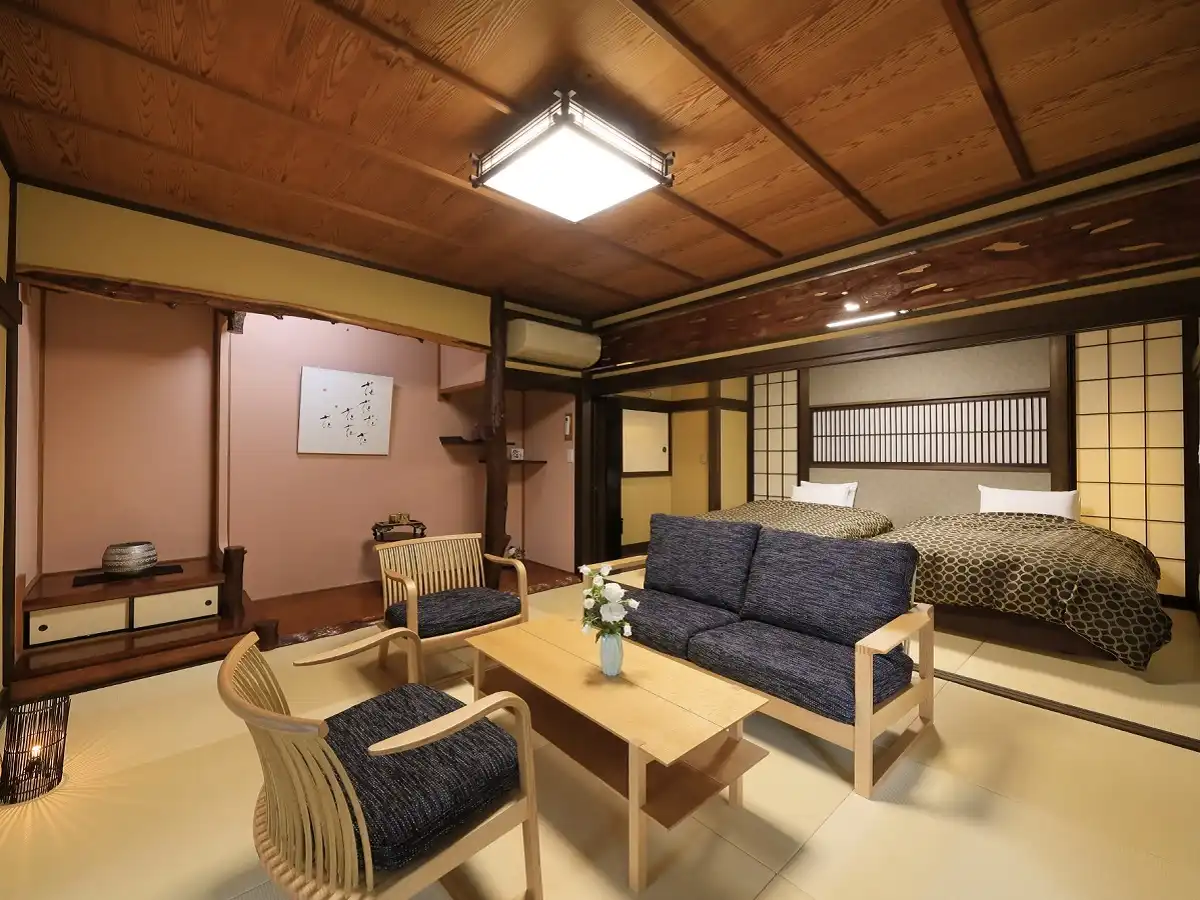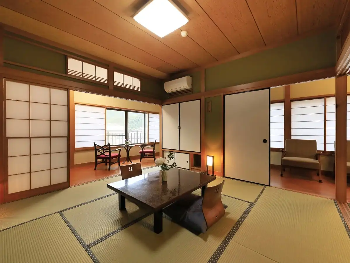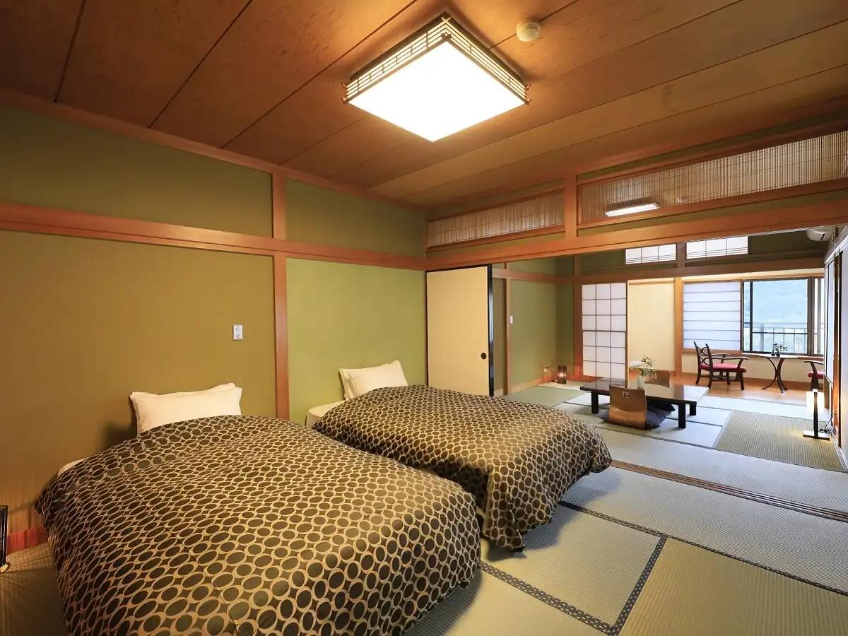 Yugawara Fuga is an elegant adult-oriented ryokan in the Yugawara area, designed as a serene retreat surrounded by nature. Guests can relax in open-air baths with natural hot spring water while admiring the seasonal scenery. Rooms blend traditional Japanese calm with modern Western comfort, creating a refined atmosphere. Dinner features creative kaiseki cuisine crafted with seasonal ingredients, beautifully presented for a memorable dining experience. Ideal as a sightseeing base or for therapeutic stays, the inn offers a tranquil escape from everyday life.