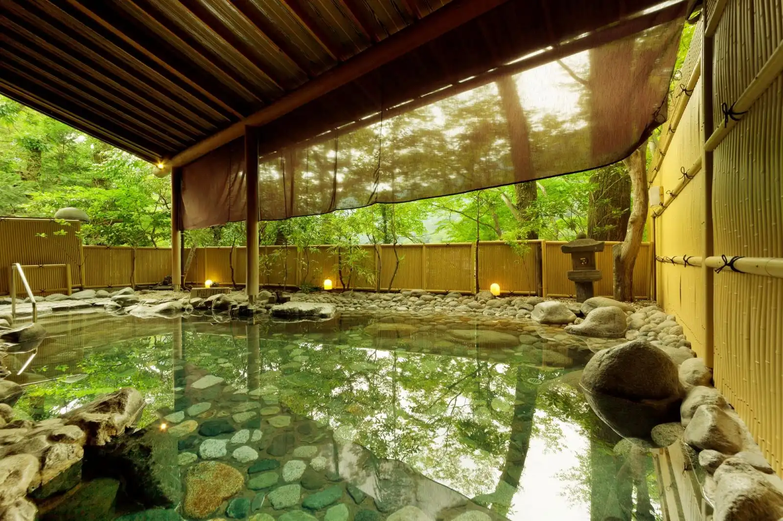 Hotellerie Maille Coeur Shougetsu is a stylish spa resort hotel in the Hakone Yumoto area, especially popular among female travelers. Known for its skin-beautifying hot springs and creative kaiseki cuisine, the hotel offers a refined and relaxing stay. The spacious baths “Biraku no Yu” and “Kiraku no Yu” allow guests to soak while enjoying views of seasonal gardens. Dinner begins with beautifully presented appetizers served on ceramic, glass, and Western-style tableware, followed by innovative Japanese dishes that change with the seasons. With soothing hot springs, fine dining, and comfortable rooms, Shougetsu is perfect for sightseeing and a restorative escape.