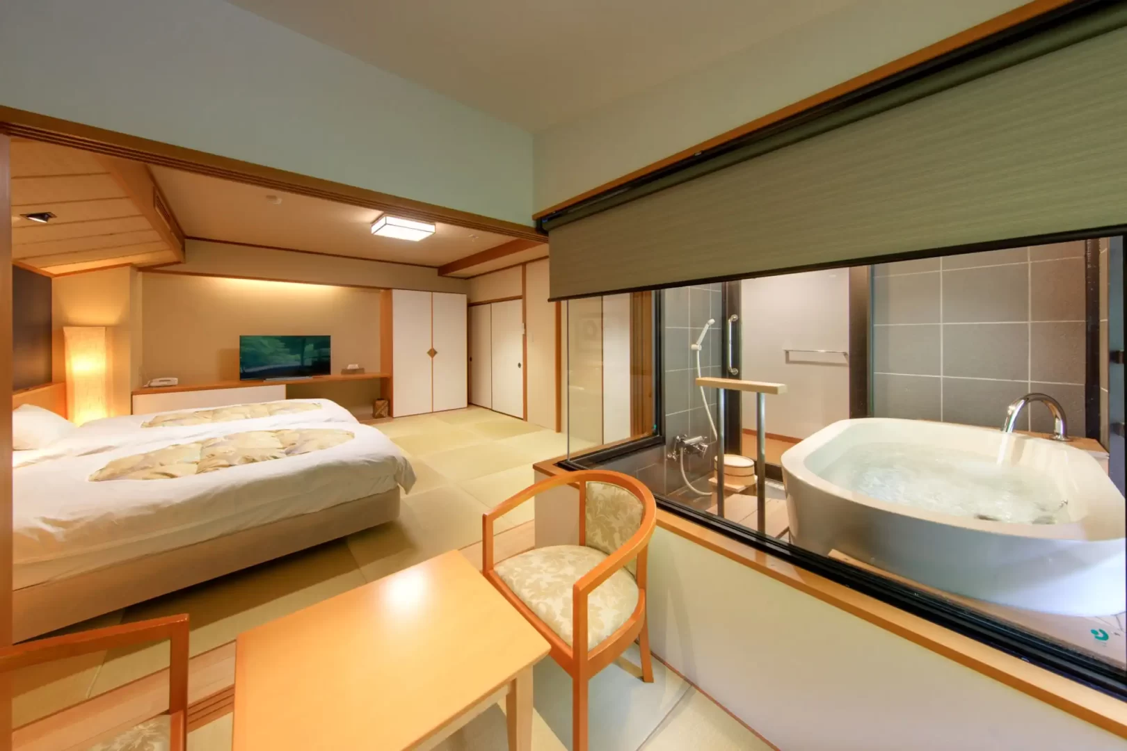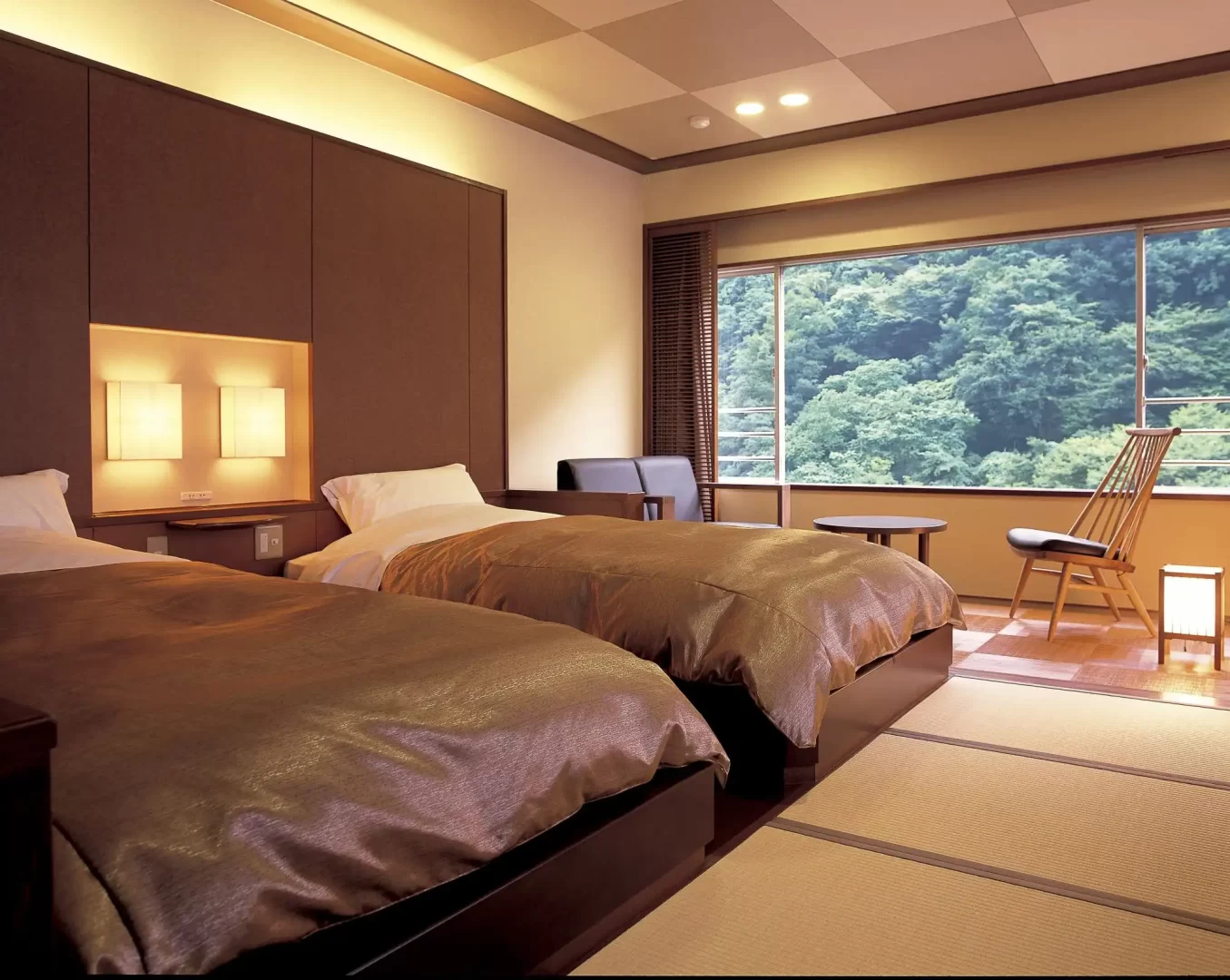 Hotel Okuyumoto is a peaceful hot spring retreat in the Hakone-Yumoto area, surrounded by nature. Guests can relax in the rustic open-air bath Takikan-no-Yu, overlooking a waterfall, or enjoy the soothing sounds of the Sukumogawa River from the open-air bath Fuji-no-Yu. With its own natural hot spring sources, the baths are continuously free-flowing. Combined with refined cuisine and comfortable rooms, Hotel Okuyumoto is perfect for sightseeing or a tranquil onsen getaway, embraced by Hakone’s seasonal beauty.