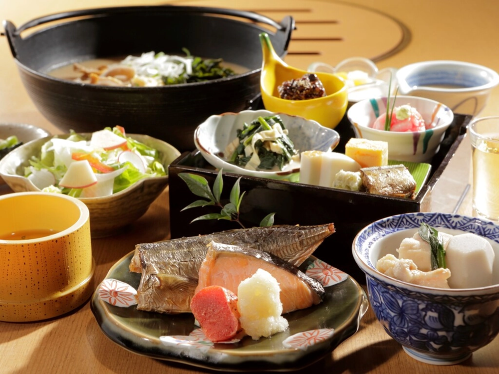 早餐供應以烤魚為主菜、搭配多款色彩鮮豔的小菜,是旅途中最適合享用的奢華日式套餐。烤魚可在桌邊再次加熱,隨著香氣逐漸升起,讓人食慾大開。味噌湯與白飯皆可無限續用,讓您在出門觀光前,好好補充活力。