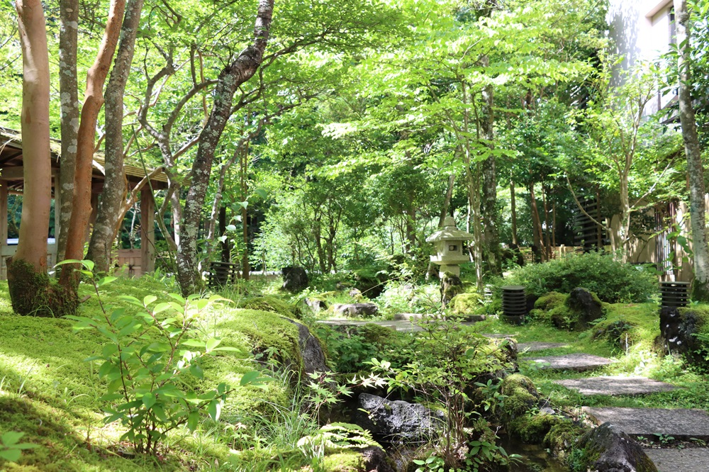 在被綠意包圍的庭園中散步,也是「水之音」的享受方式之一。庭園裡有小溪潺潺流過,療癒的水聲輕輕迴響。庭園深處還設有涼亭,非常適合悠閒休憩。