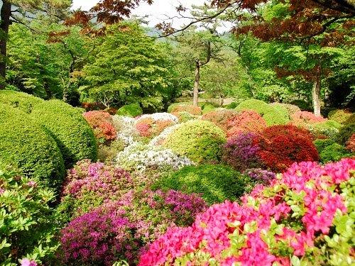 在天氣晴好的日子,駐足於飯店的庭園內還能夠遠眺富士山。富士山在色彩鮮艷的杜鵑花的映襯下勾勒出令人嘆為觀止的優美景色。園內至今還保留了別邸時代種植的84個杜鵑花品種,其中包括唯有此地才能看到的江戶時代的江戶霧島、大山杜鵑花品類、琉球杜鵑花品類等30種以上的珍貴品種。岩崎男爵曾經將西洋石楠花等具有極高歷史價值的品種從英國首次進口到日本,使這裡成為賞杜鵑花的著名景點。此外,玫瑰園內種植有早開品種和晚開品種,不僅可以觀賞玫瑰,還可以秋賞紅葉、冬觀富士山頂的積雪,是一處四季皆有絕佳景觀的設施。
