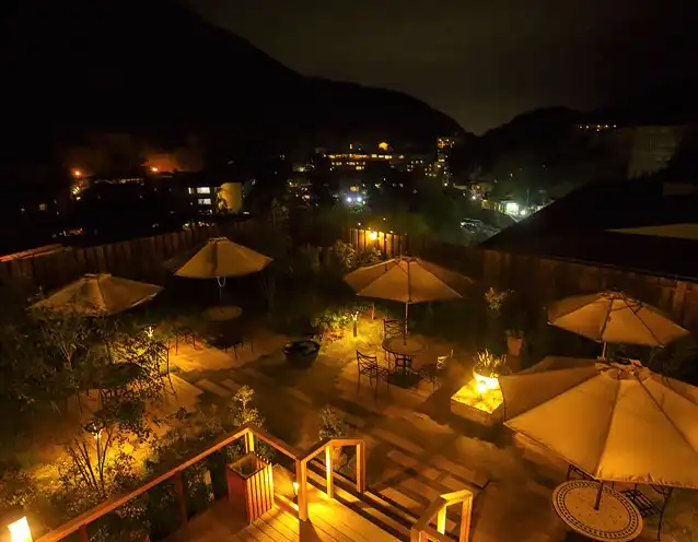 在溫泉中放鬆身心後,不妨前往頂樓的屋頂庭園走走。柔和燈光營造出的夢幻氛圍中,您可以盡情欣賞箱根四季不同的迷人風景。