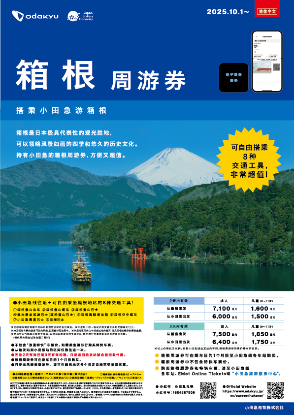 箱根周遊券、江之島鎌倉周遊券、丹澤大山周遊券,以及小田急線的車票,可於各車站的售票機或網上購買。此外,如富士箱根周遊券等,售票機或網上沒有銷售的車票,請至小田急旅遊服務中心購買。