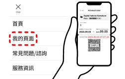 請從購買時收到的電子郵件中,進入「我的頁面」或票券頁面,並出示票券。