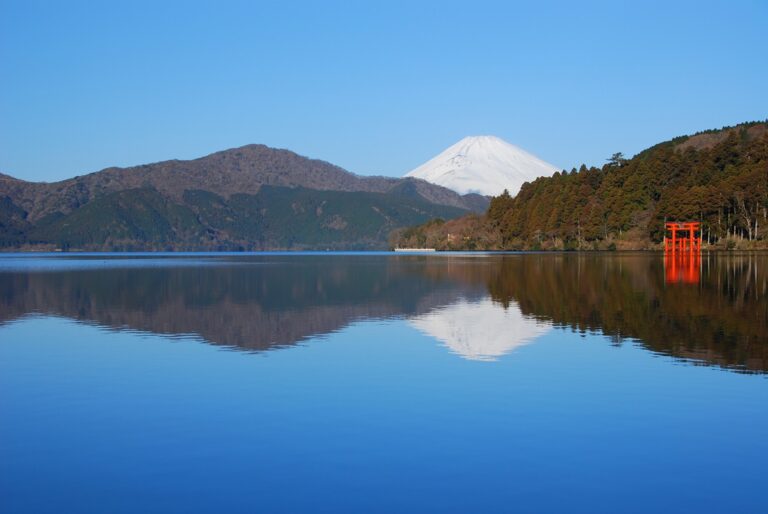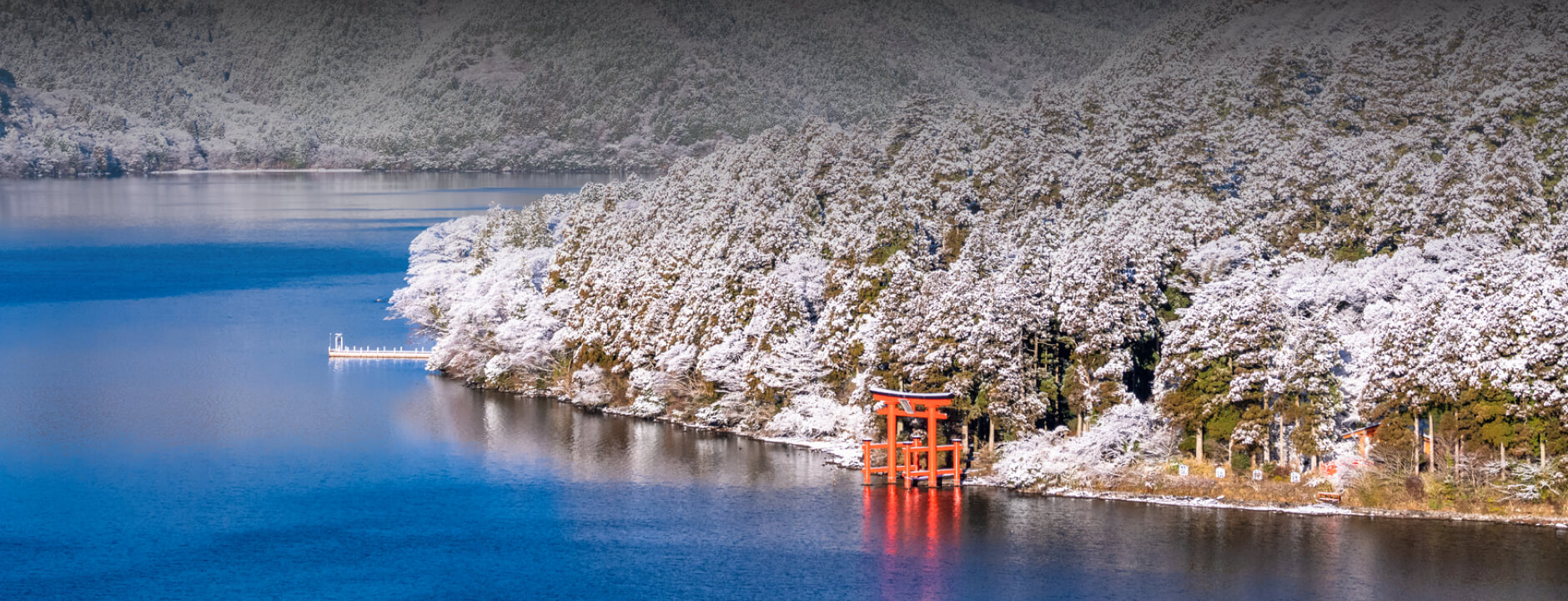 天空澄澈,雪妝山巒壯麗的冬日箱根。冷冽空氣中浸泡溫泉格外美好,清新景色伴隨身心一同溫暖。