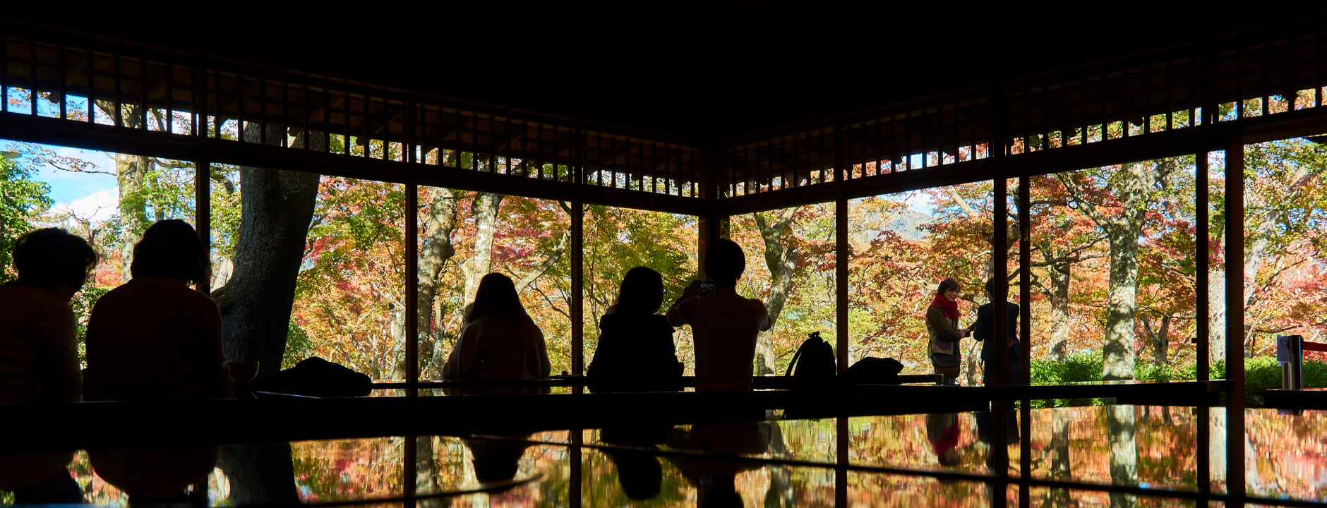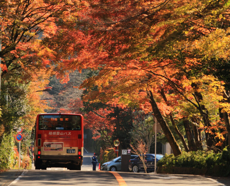 被紅葉包圍的秋日箱根。群山與溪谷染上鮮紅與金黃,溫泉街也增添雅趣氛圍。靜謐時光與美景療癒身心。