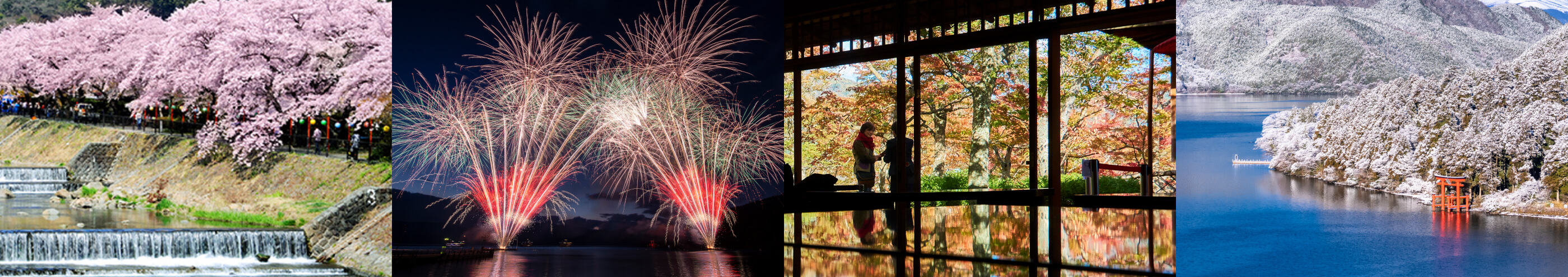 櫻花與新綠點綴的春日箱根。柔和的陽光與清爽的微風環繞,湖泊與群山的景色閃耀明亮。可透過散步與溫泉悠閒享受自然之美。