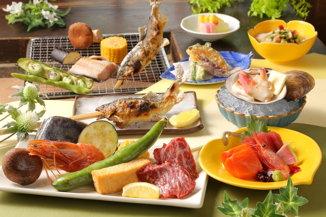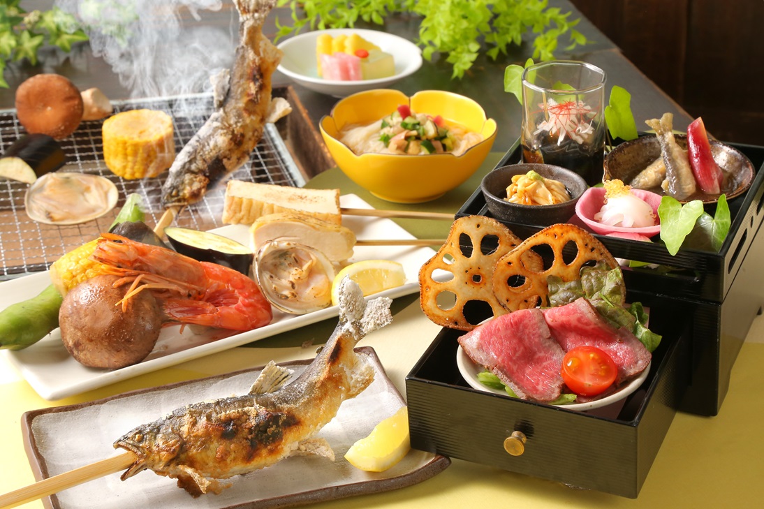 位於箱根湯寮內的「圍爐裏茶寮 八里」,以懷舊的里山風情打造空間,提供正宗的圍爐料理。炭火燒烤的川魚、國產牛與時令蔬菜,香氣四溢,帶來五感享受。餐廳備有圍爐套餐、御膳及單點料理,僅用餐也可入店。泡湯後圍著圍爐,細品非日常的美味時光。