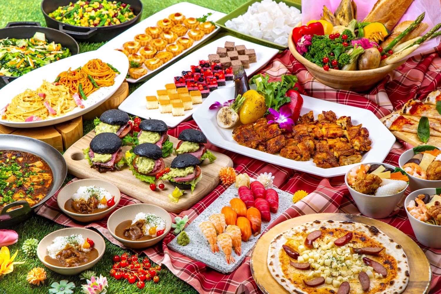 餐點種類約 60 種,涵蓋和食、西式與中式料理,任您無限享用。其中,傳承傳統食譜、深受長年喜愛的招牌料理 小涌園拉麵 與 小涌園雞肉咖哩 尤其值得一試。此外,可依個人喜好自由搭配食材的 「山海丼」 也相當推薦。