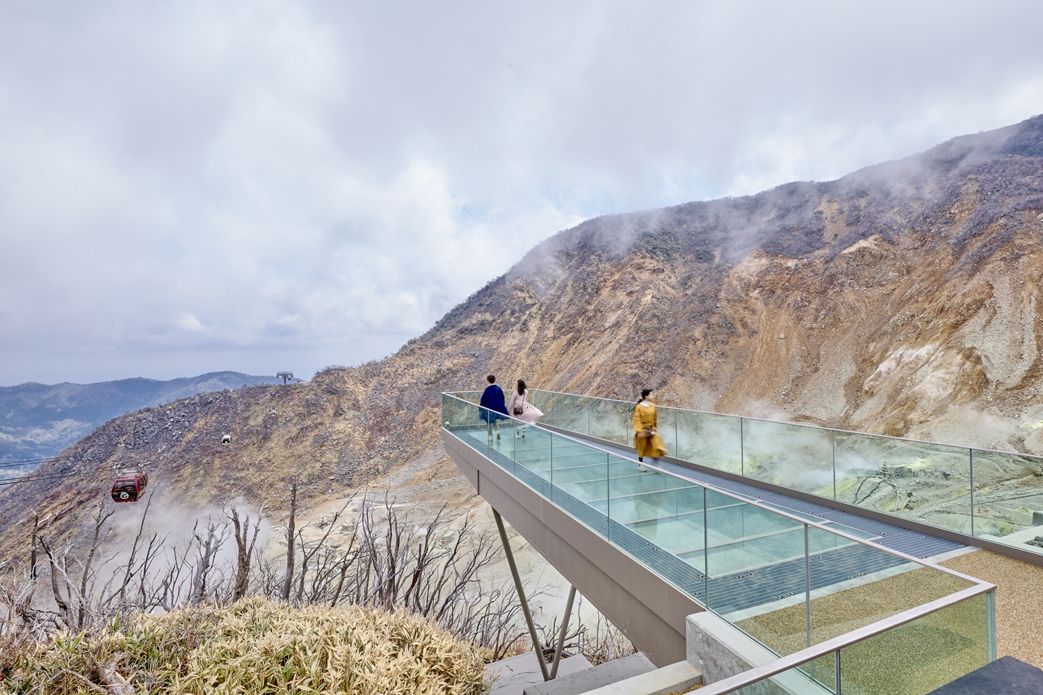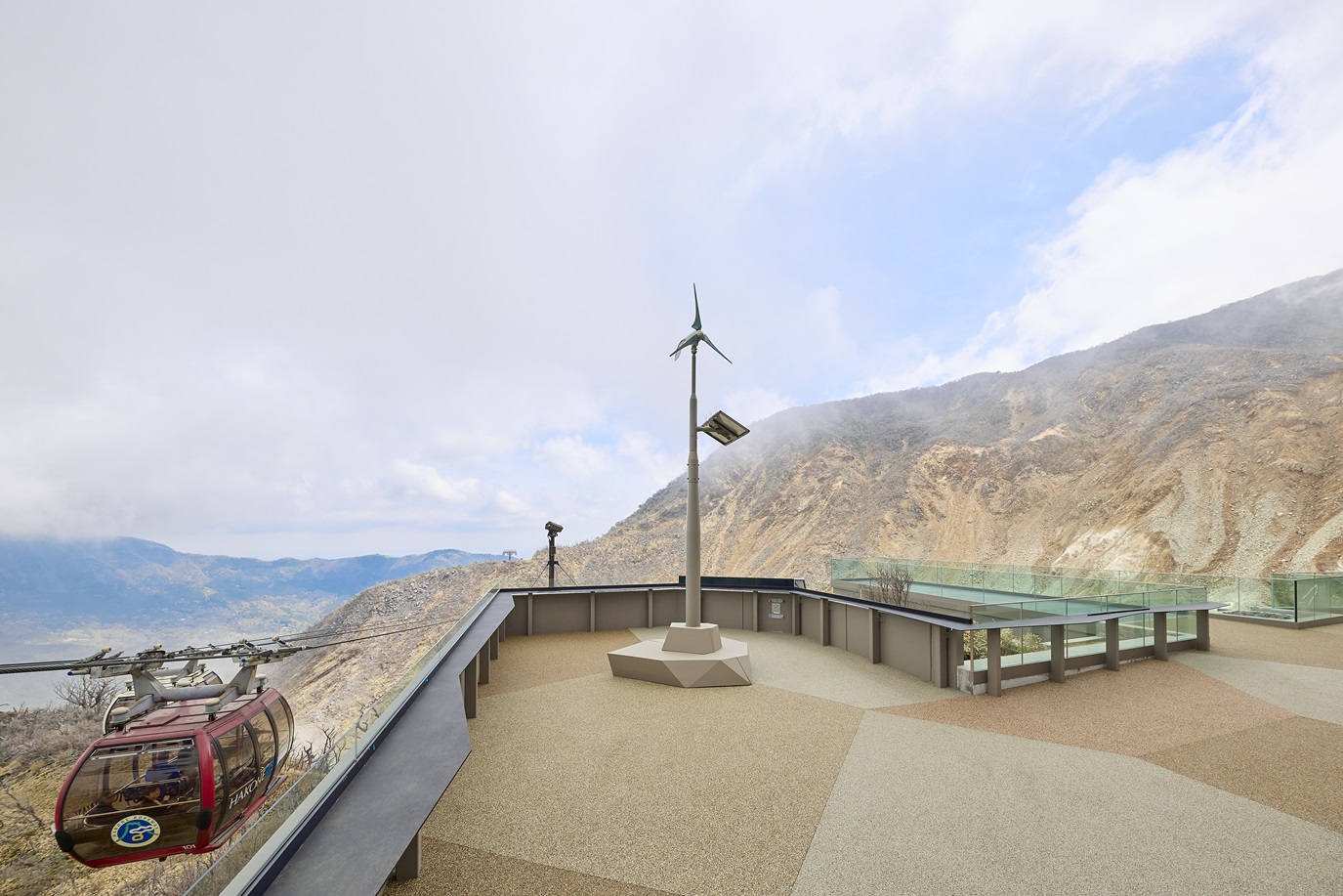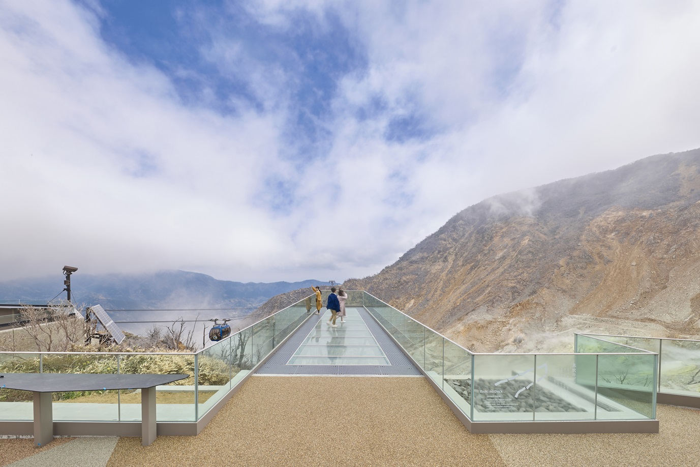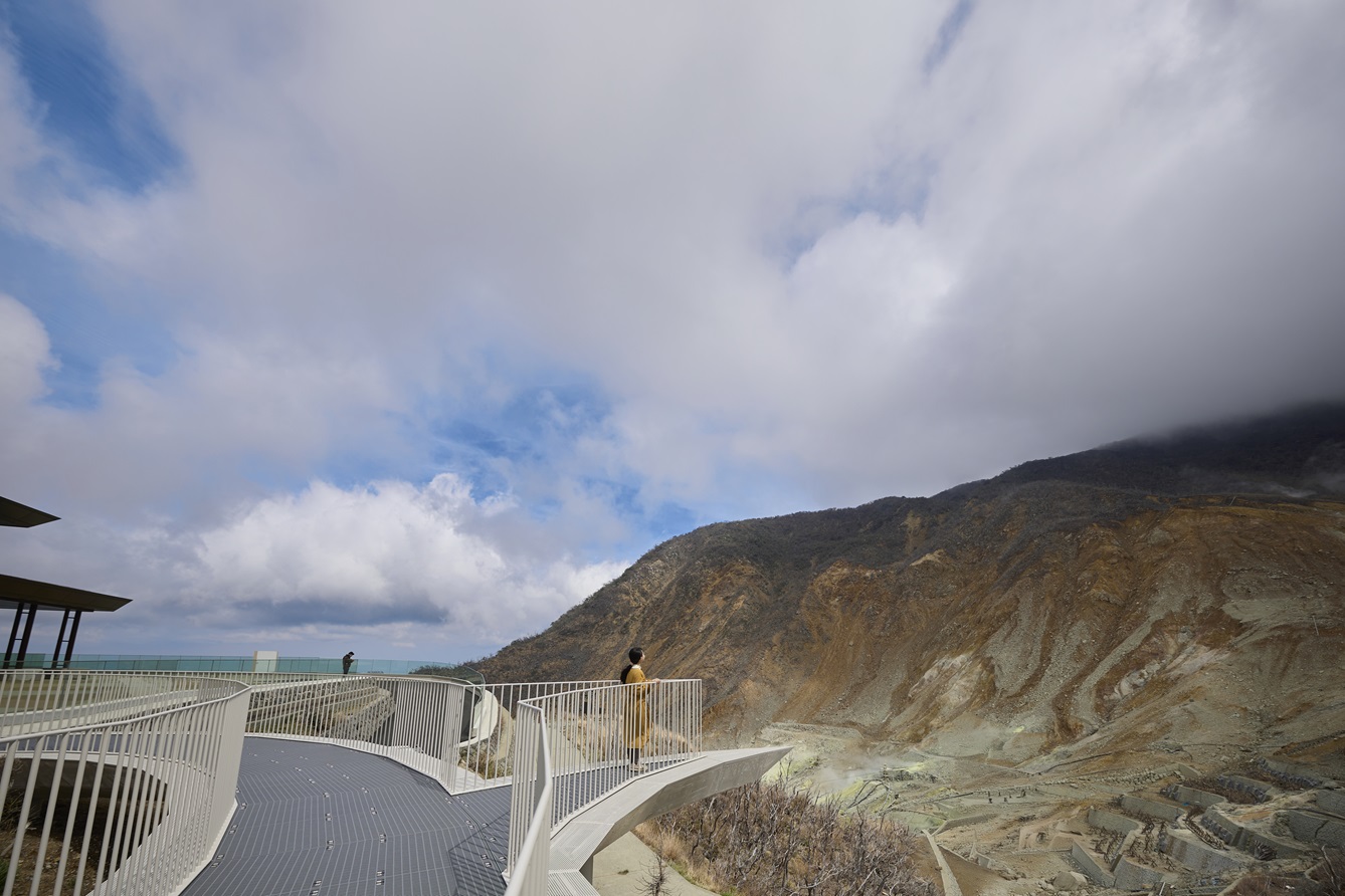 「地球之谷(Chikyuu no Tani / Earth Valley)」 位於箱根空中纜車大涌谷站旁,是2025年全新開放的展望區域。旅客可以近距離感受大涌谷火山地形的震撼、噴氣蒸騰的景象,以及壯麗的山岳風光。