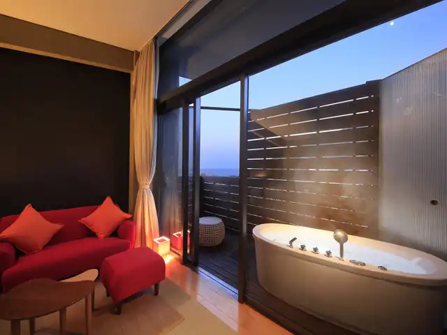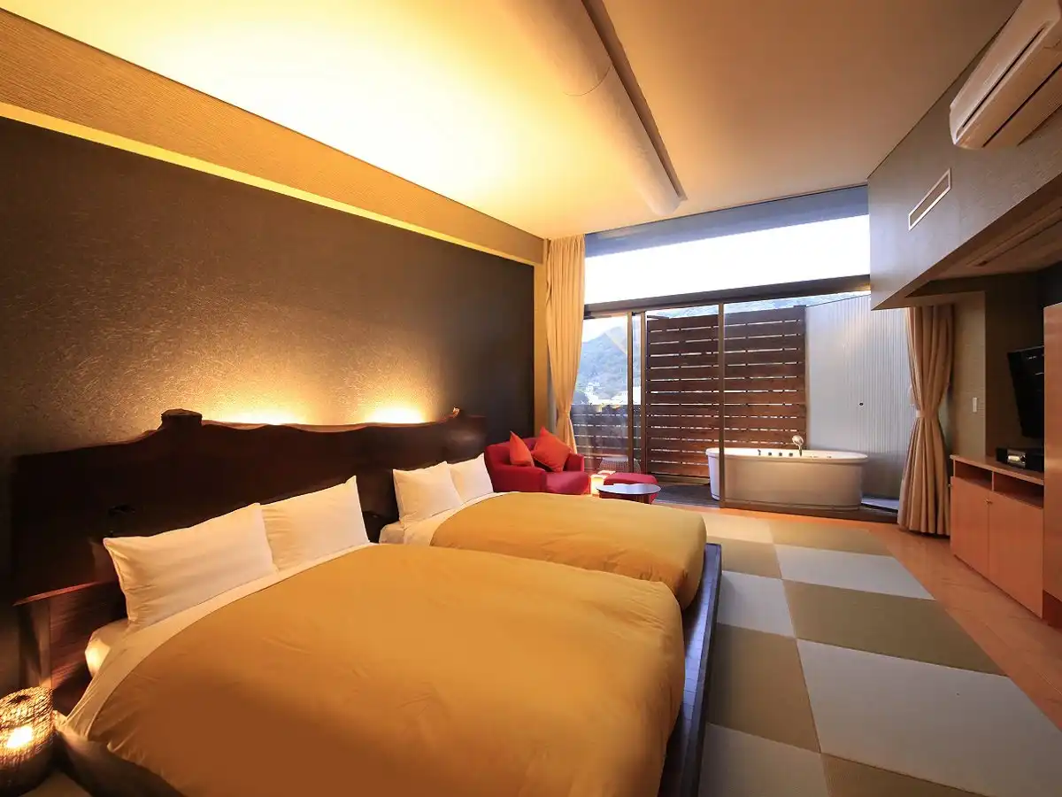 熱海Tensui傳統日式旅館(ATAMI TENSUI)位於熱海地區,是一家融合和風與西式元素的摩登旅館。每間客房皆擁有不同風格,營造出獨特而舒適的空間。館內設有貸切浴池與露天大浴場,源泉直湧溫泉可讓您盡情放鬆。晚餐以當季食材精心製作創作和食,外觀精緻、味道細膩,帶來難忘的美食體驗。大廳提供迎賓飲品,並以藝術作品點綴的雅致氛圍增添旅途樂趣。無論是情侶還是家庭,這裡都是方便觀光與海上休閒的隱密度假首選。