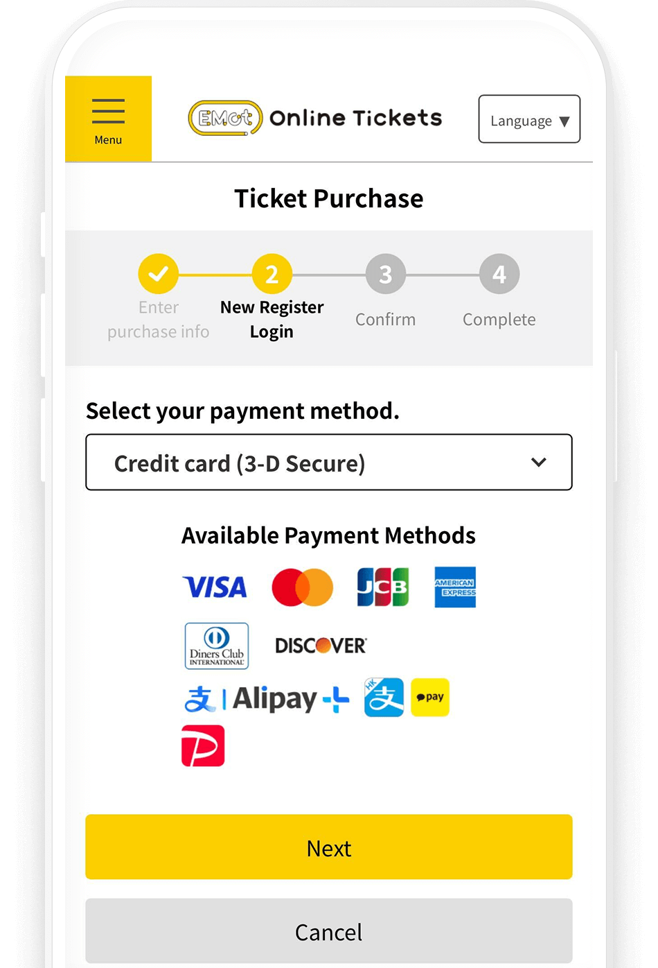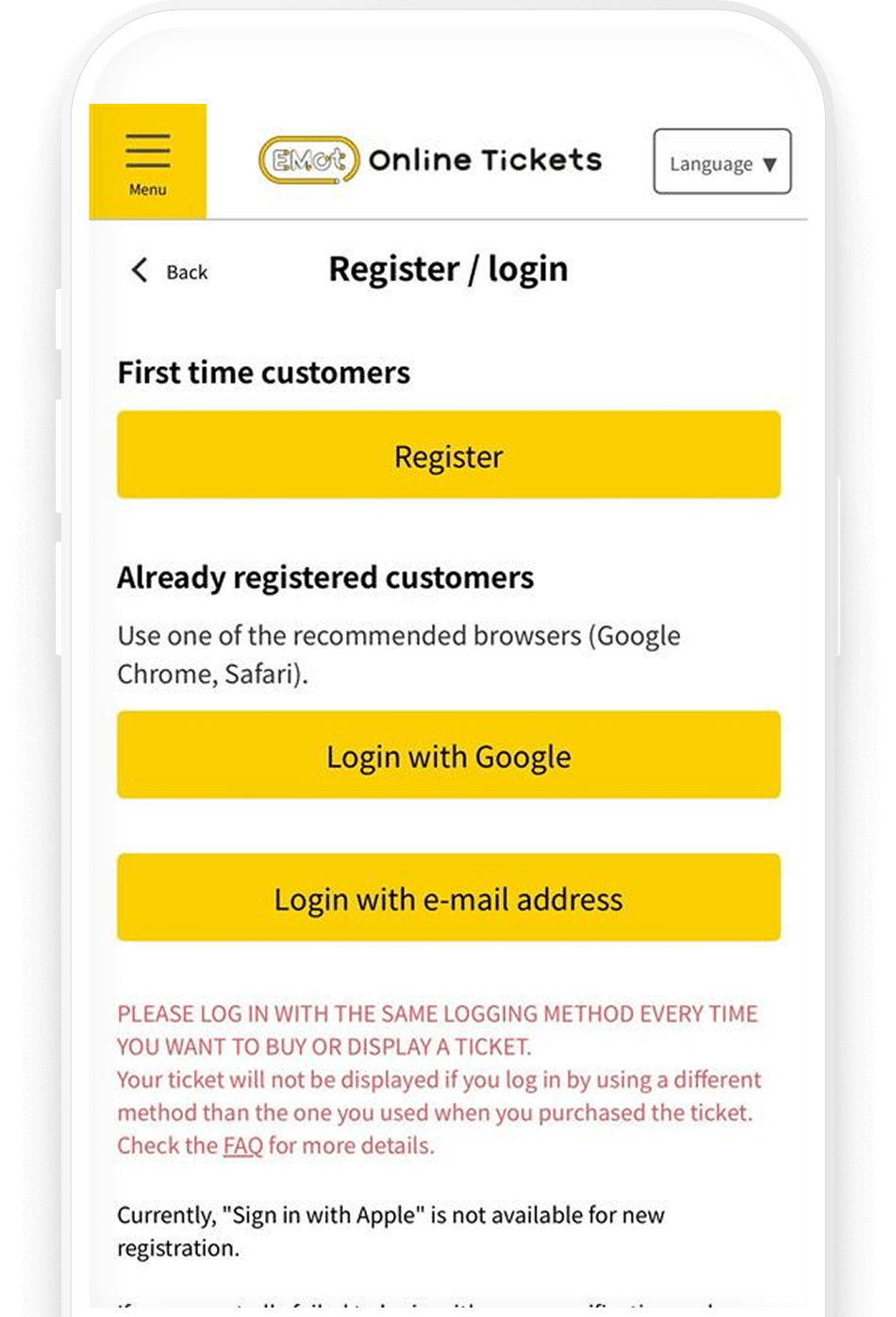 車票只能在智能手機 OR 手機上購買和顯示。請注意,個人電腦和平板電腦無法使用。