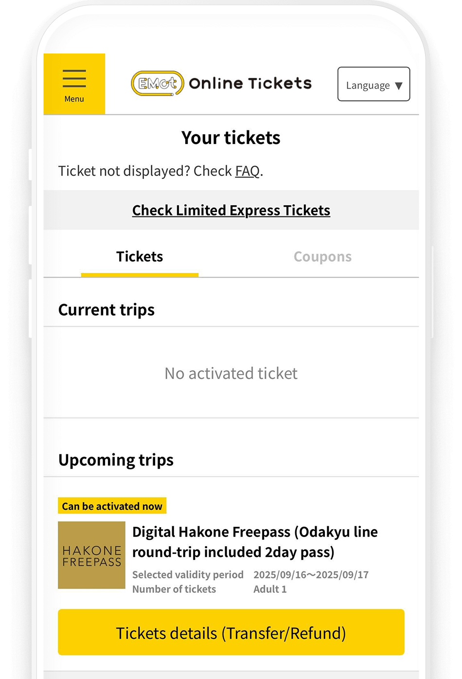 透過 EMot Online Tickets,隨時購買小田急優惠周遊券: