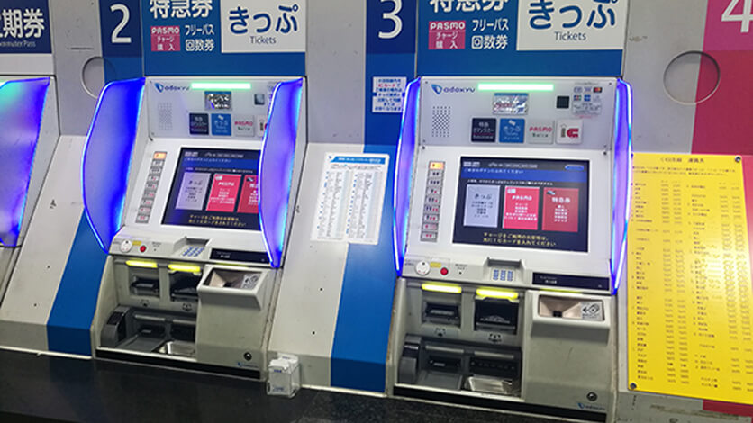所有小田急線的車站都配備了如照片所示的售票機。您可以使用觸摸屏面板購買您的車票。