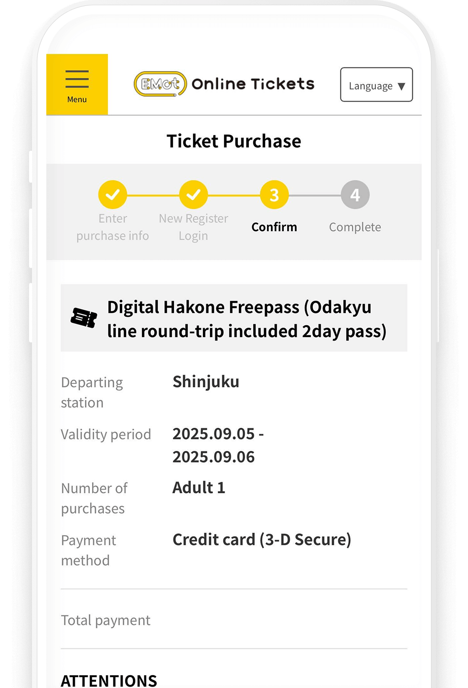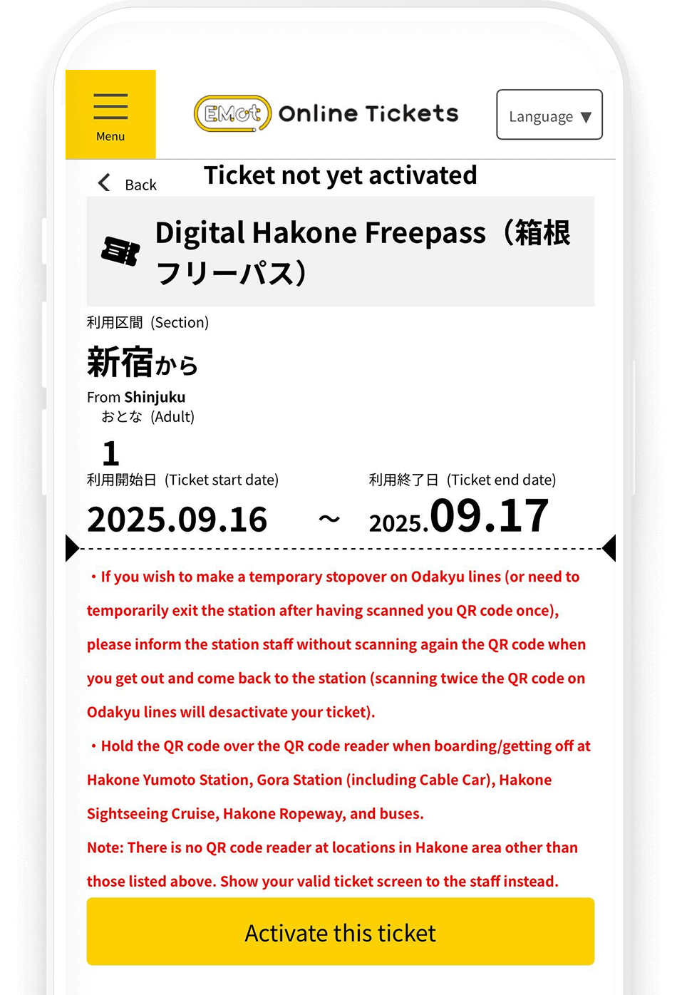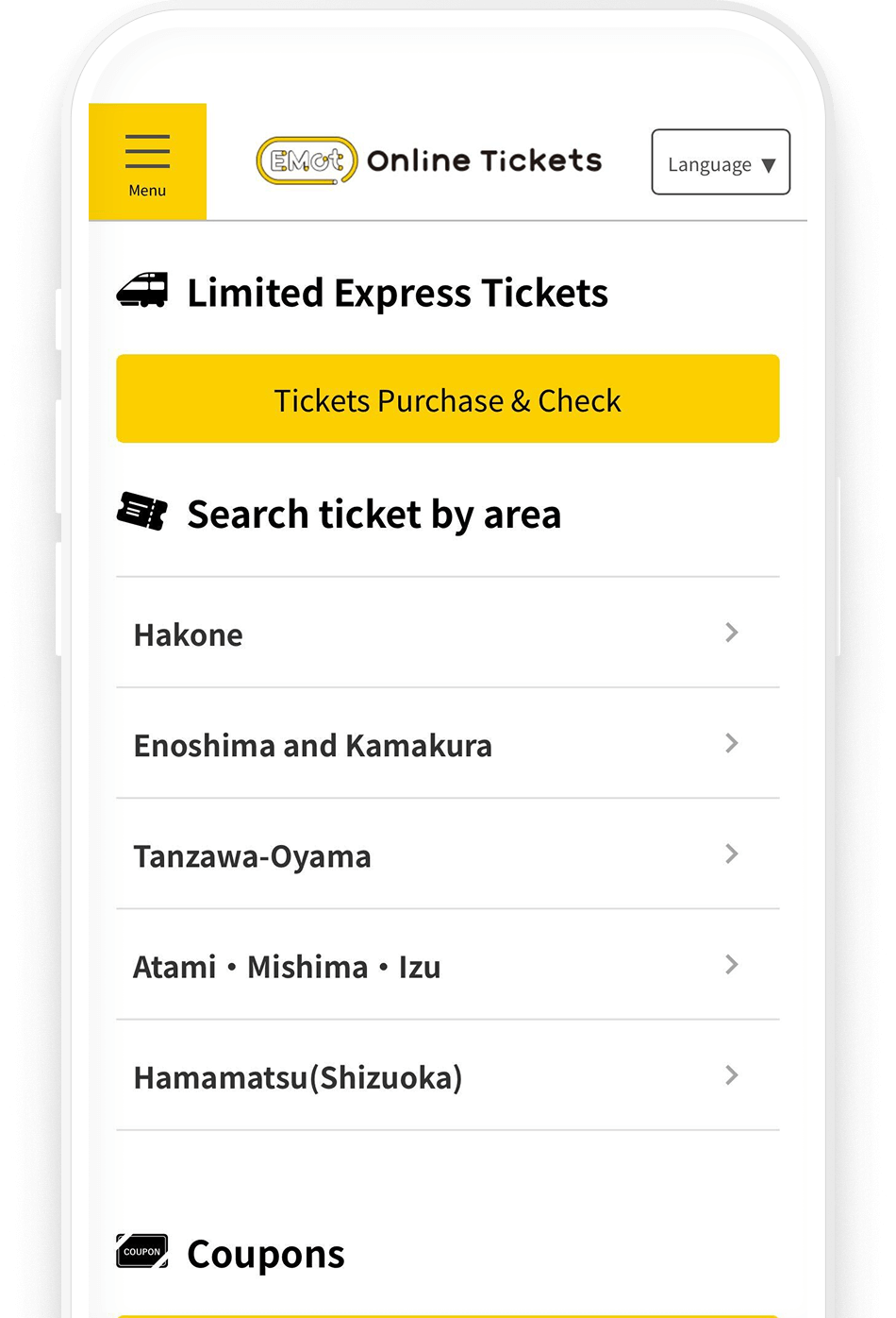 透過 EMot Online Tickets,隨時購買小田急優惠周遊券: