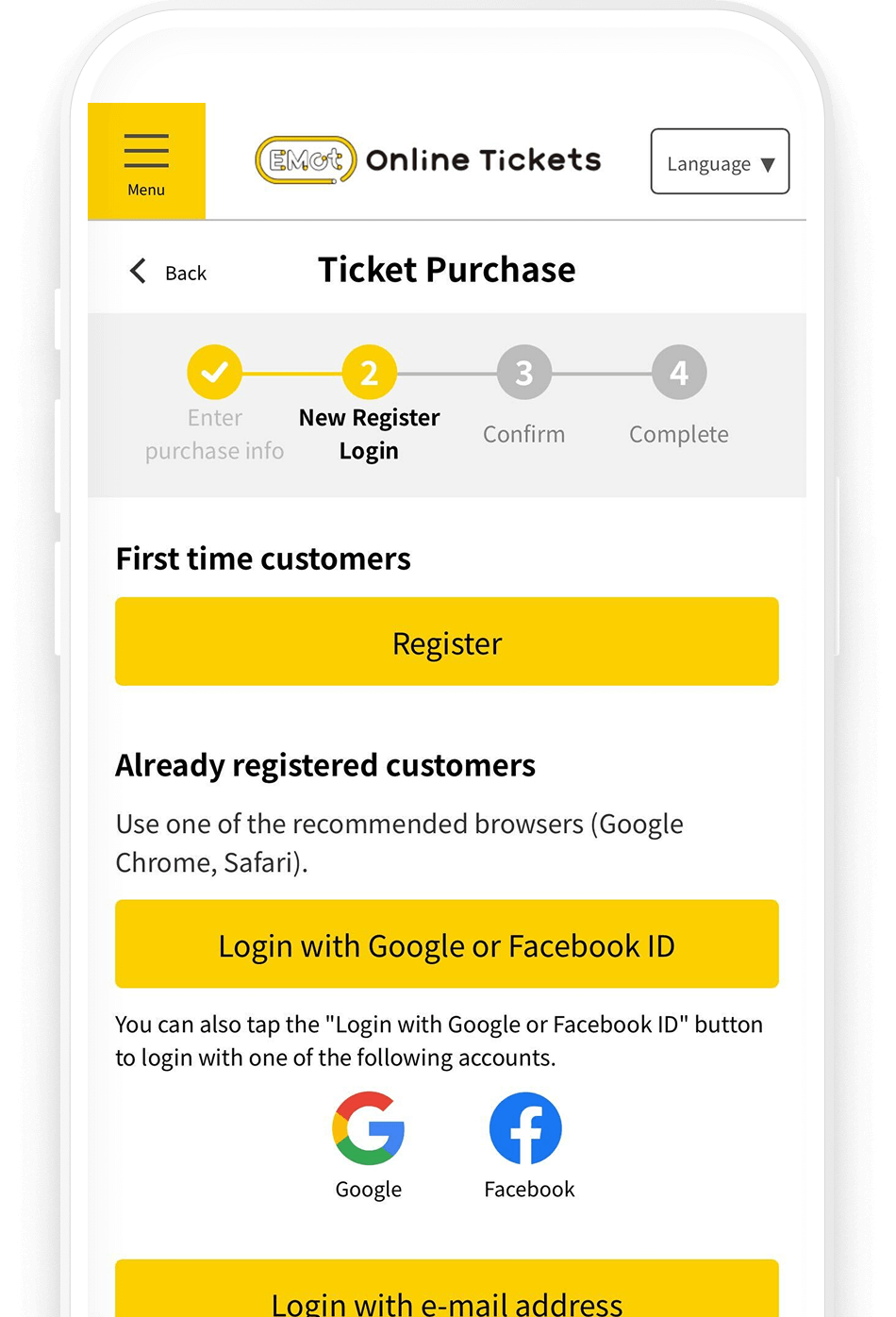 車票只能在智能手機 OR 手機上購買和顯示。請注意,個人電腦和平板電腦無法使用。
