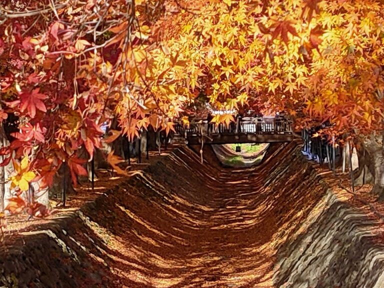 河岸兩旁種植了超過70棵楓樹,其中部分樹齡已逾百年,每到秋季便形成一條令人驚嘆的紅黃交織的楓葉隧道。漫步在燦爛的秋葉之下,盡情感受日本秋季的自然之美。