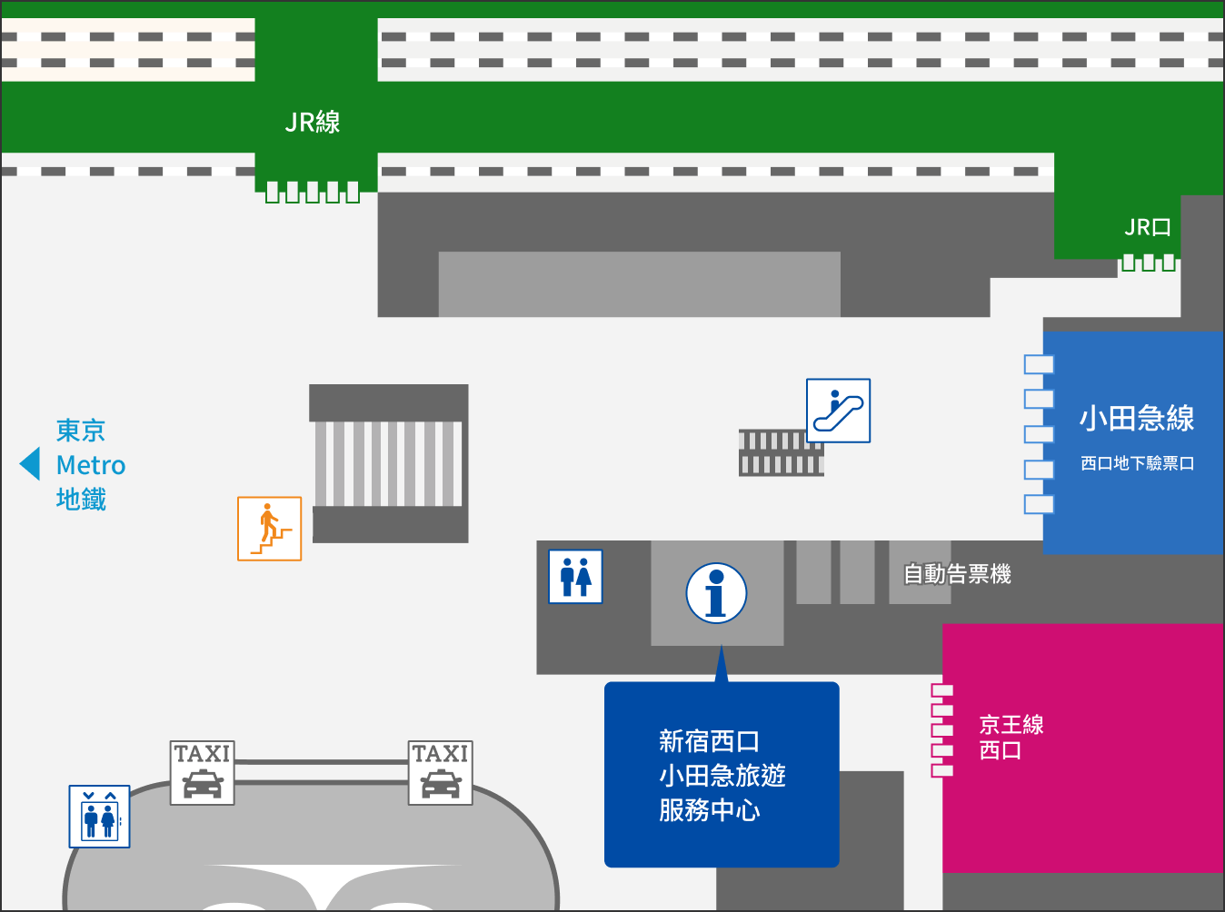 請注意,由於新宿站目前正在進行大規模建設,因此設施如樓梯和自動扶梯的位置已經改變。