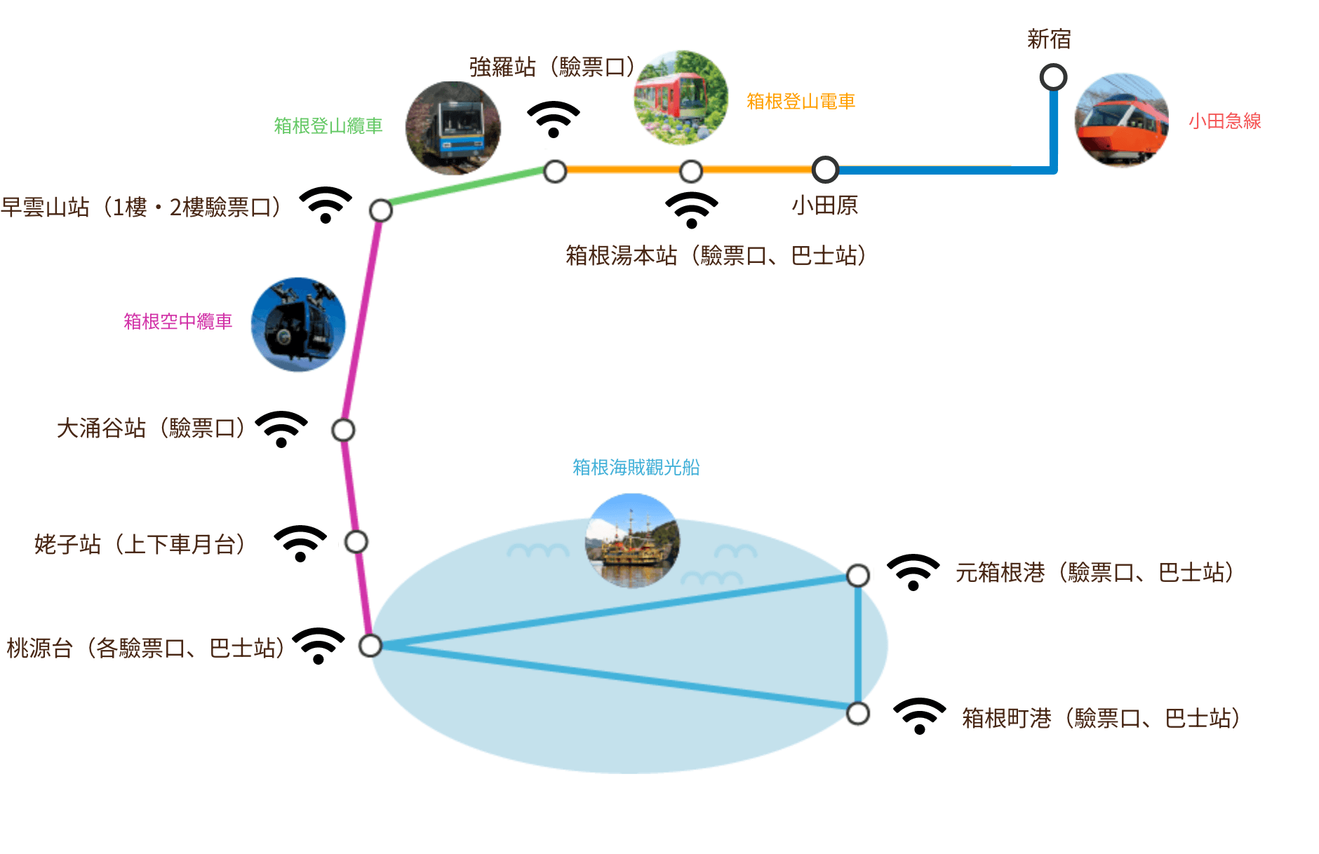 搭乘箱根的巴士、電車、浪漫特快時,請保持安靜,不要大聲交談或阻塞通道。攜帶大件行李搭巴士時要多加留意。從車站至飯店之間的行李可使用運送服務。
